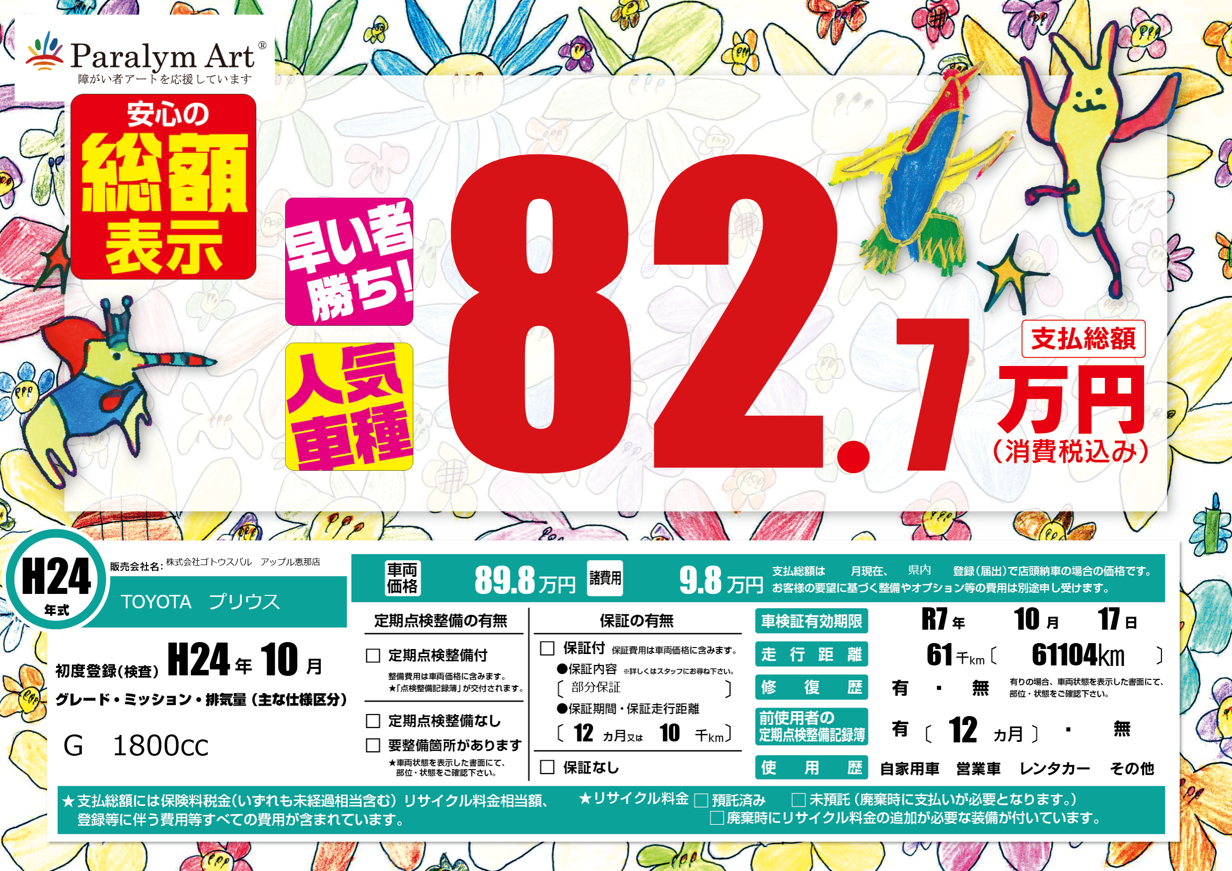 | 車名 | TOYOTA プリウス | グレード ミッション 排気量 |