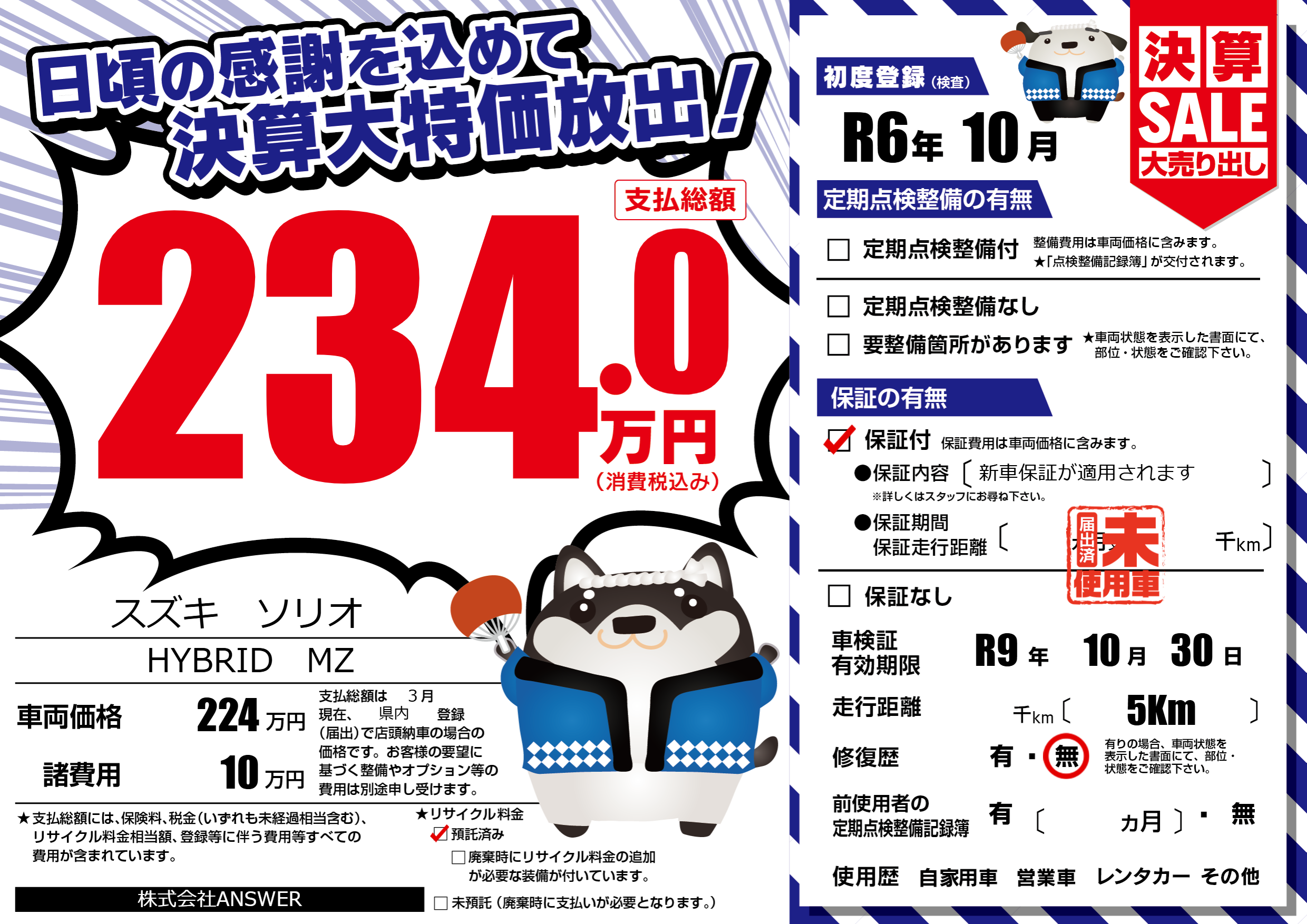 | 走行キロ | - | 初年度登録 | R6年10月 |