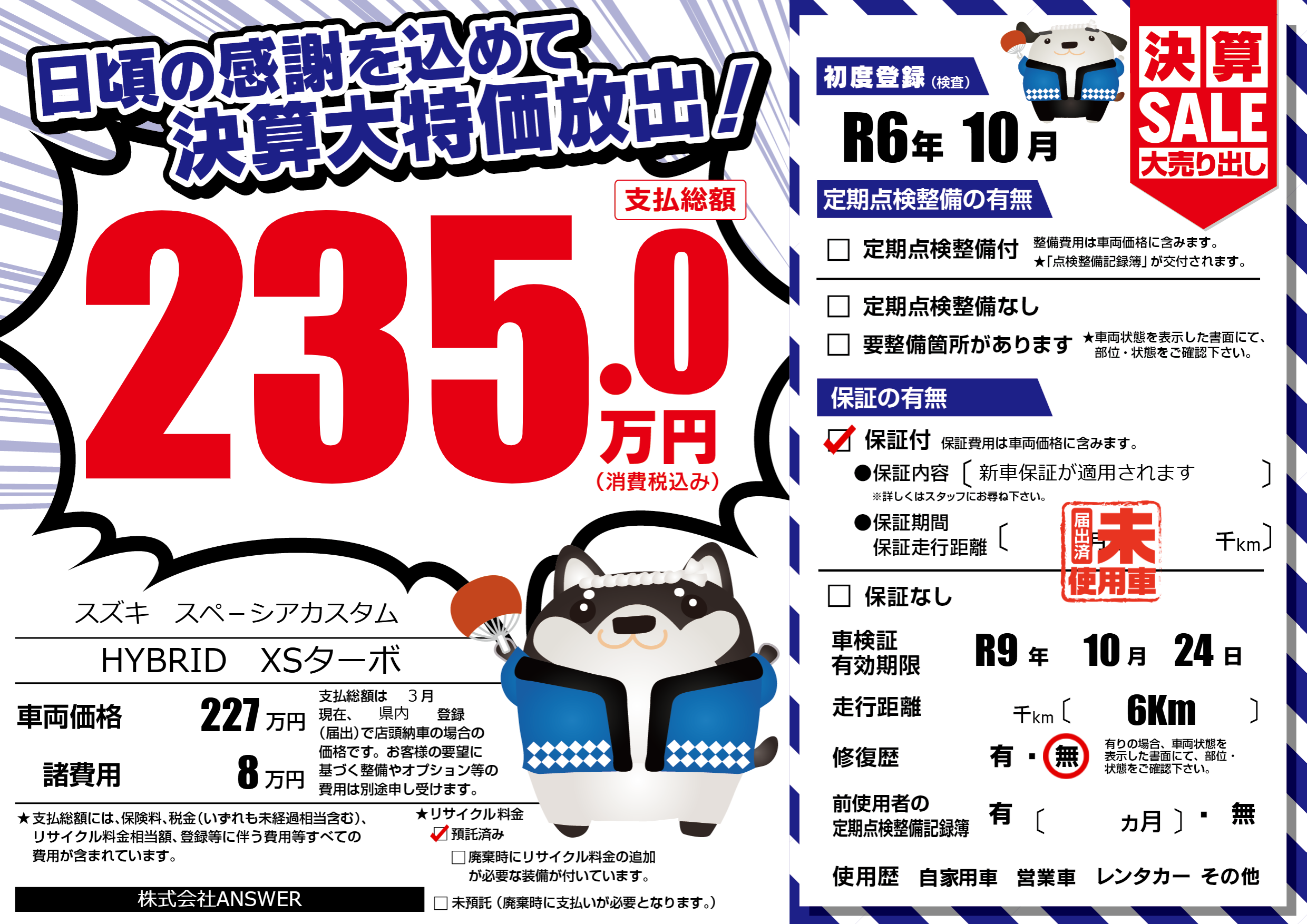 | 走行キロ | - | 初年度登録 | R6年10月 |