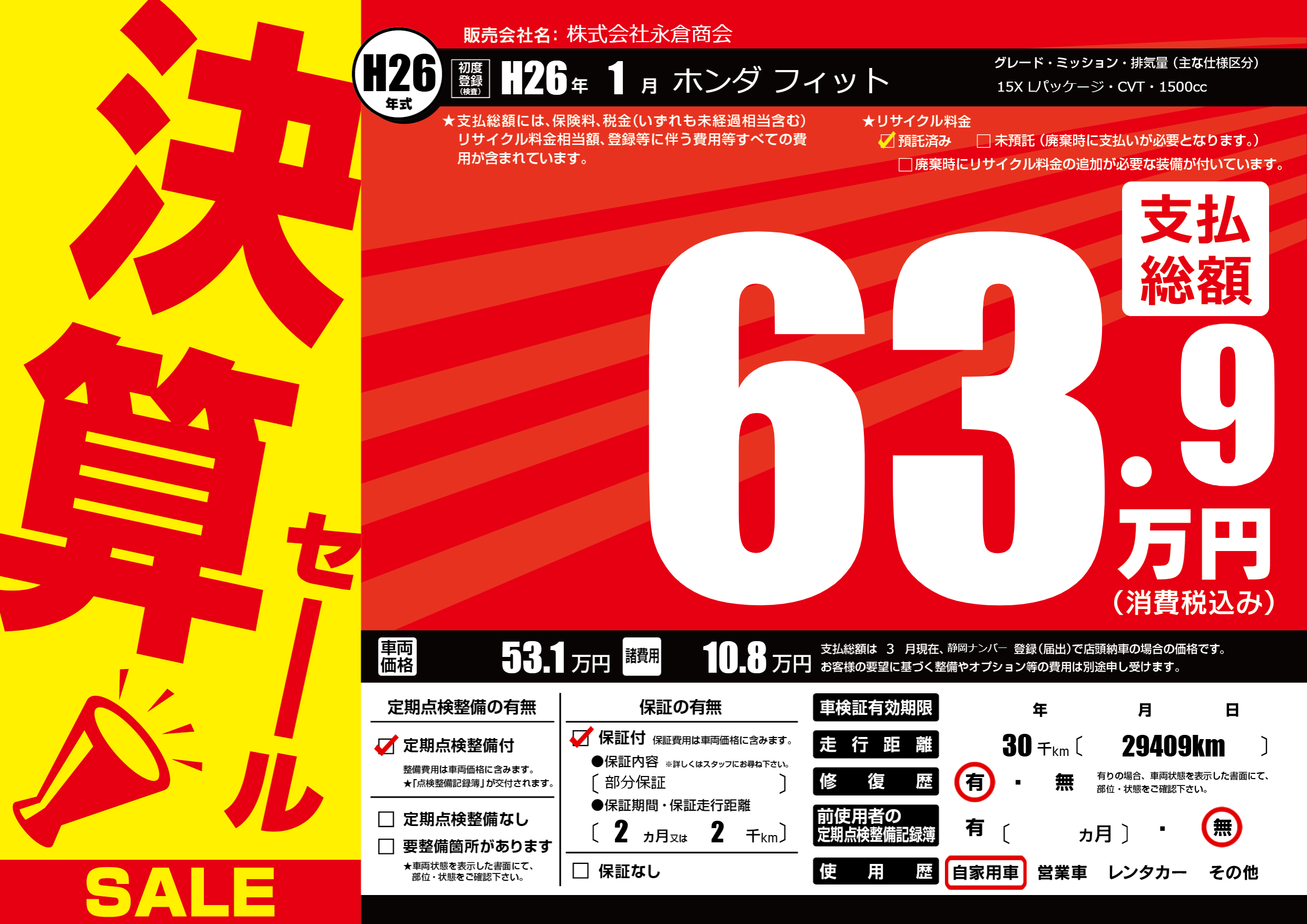 | 走行キロ | 3万km | ||