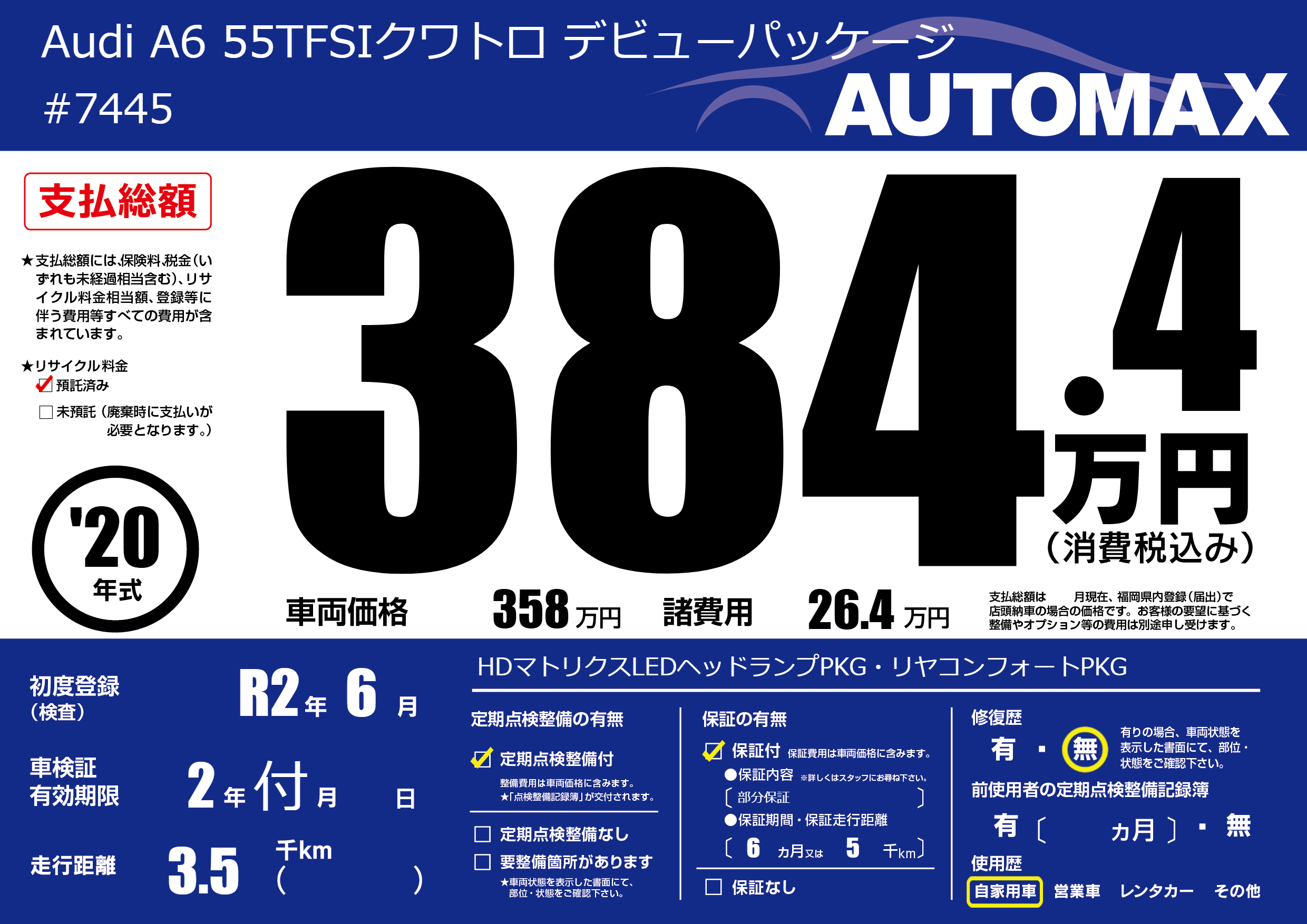 | 初年度登録 | R2年6月 | ||