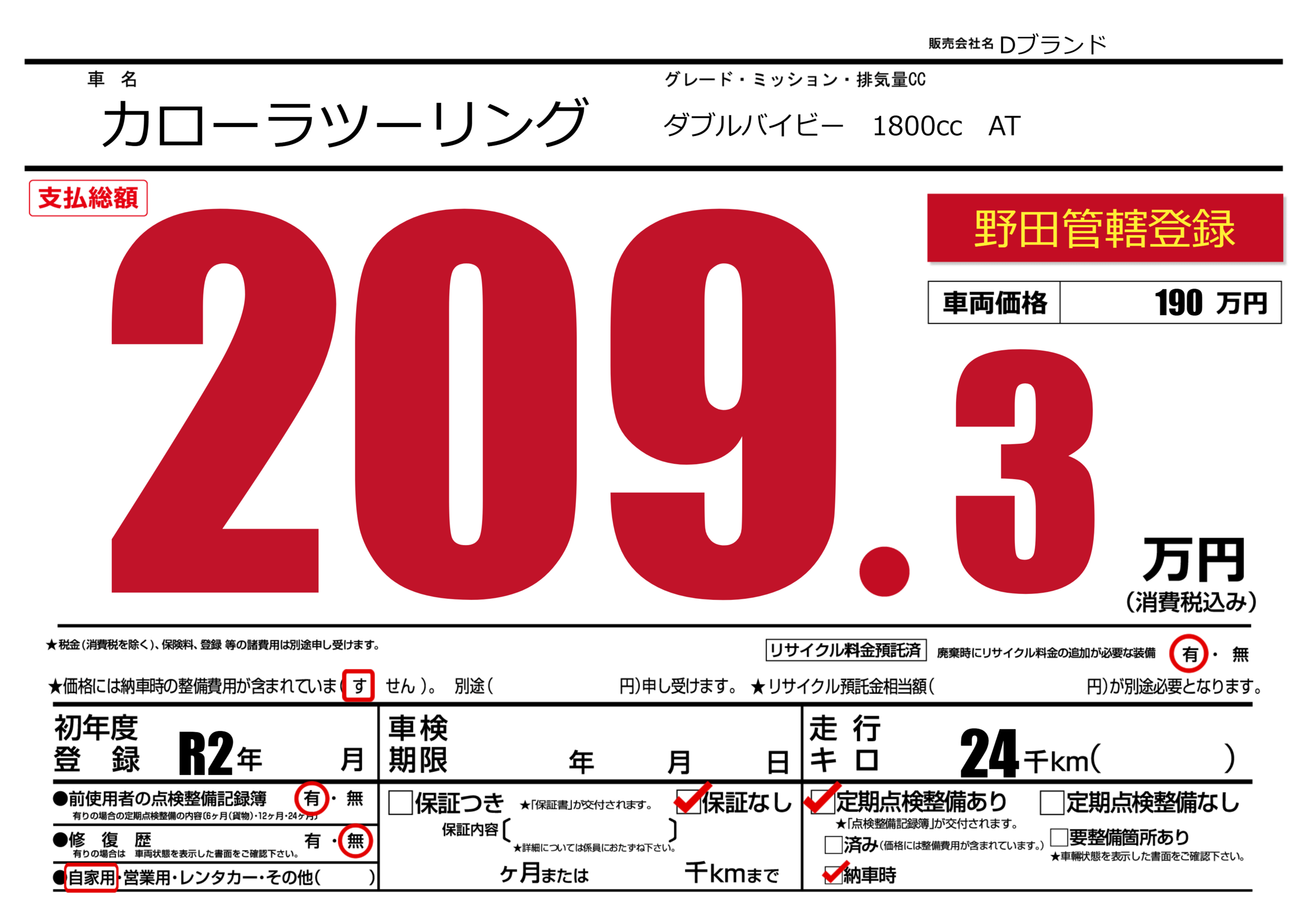 | 定期点検整備 | 定期点検整備あり 納車時あり | ||