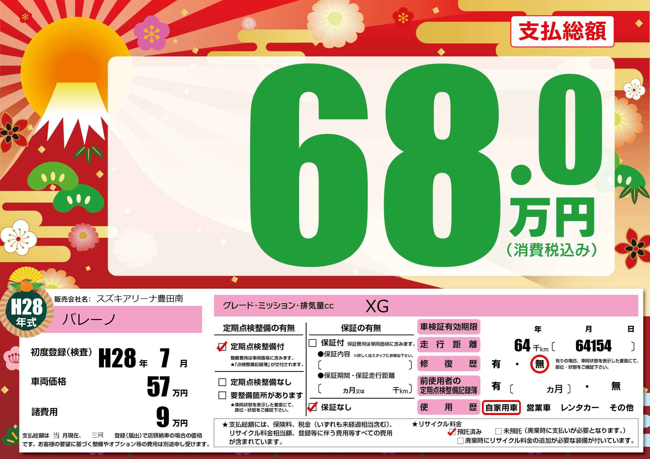 | 車名 | バレーノ | グレード ミッション 排気量 |