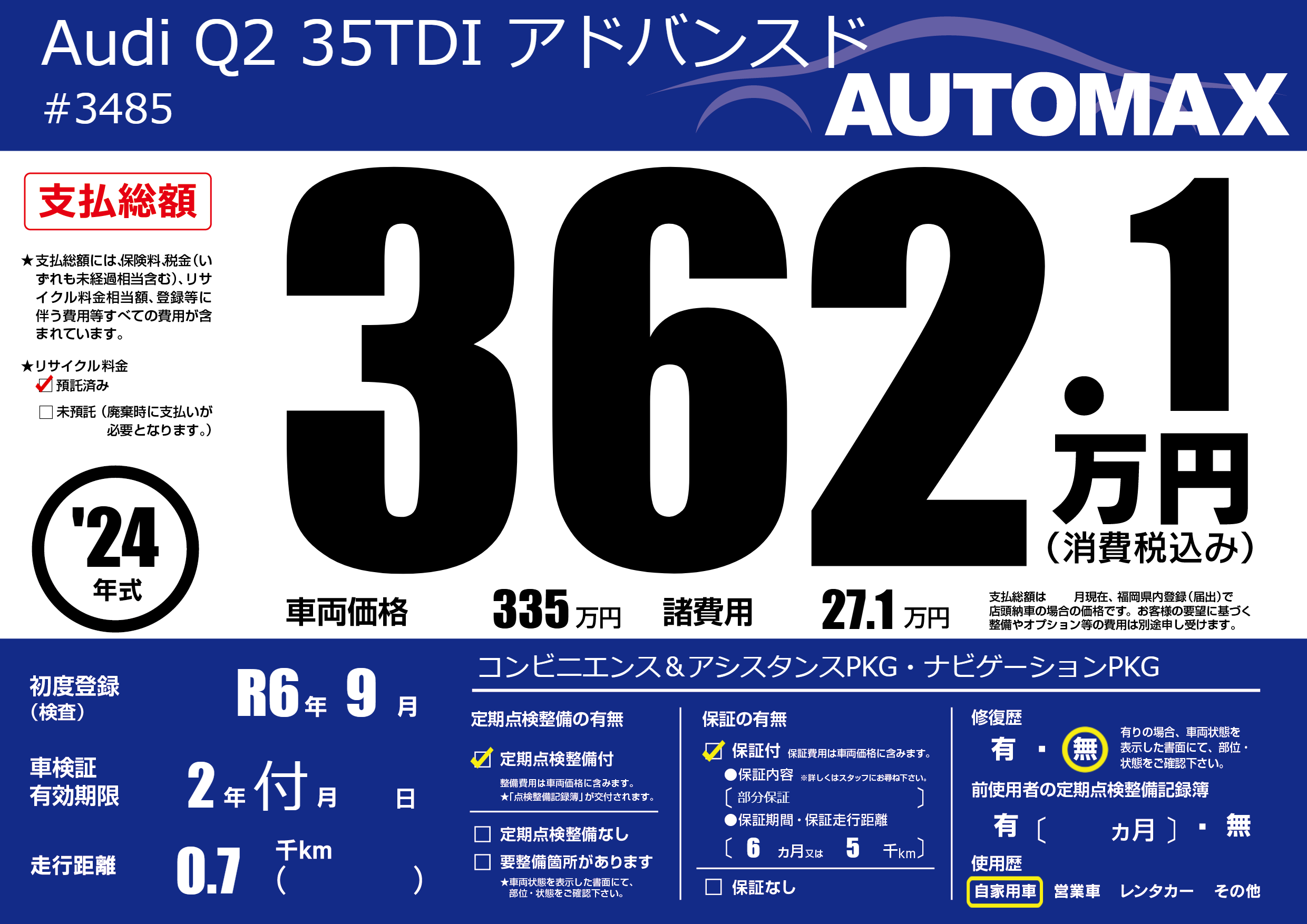 | 車名 | Audi Q2 35TDI アドバンスド | グレード ミッション 排気量 |