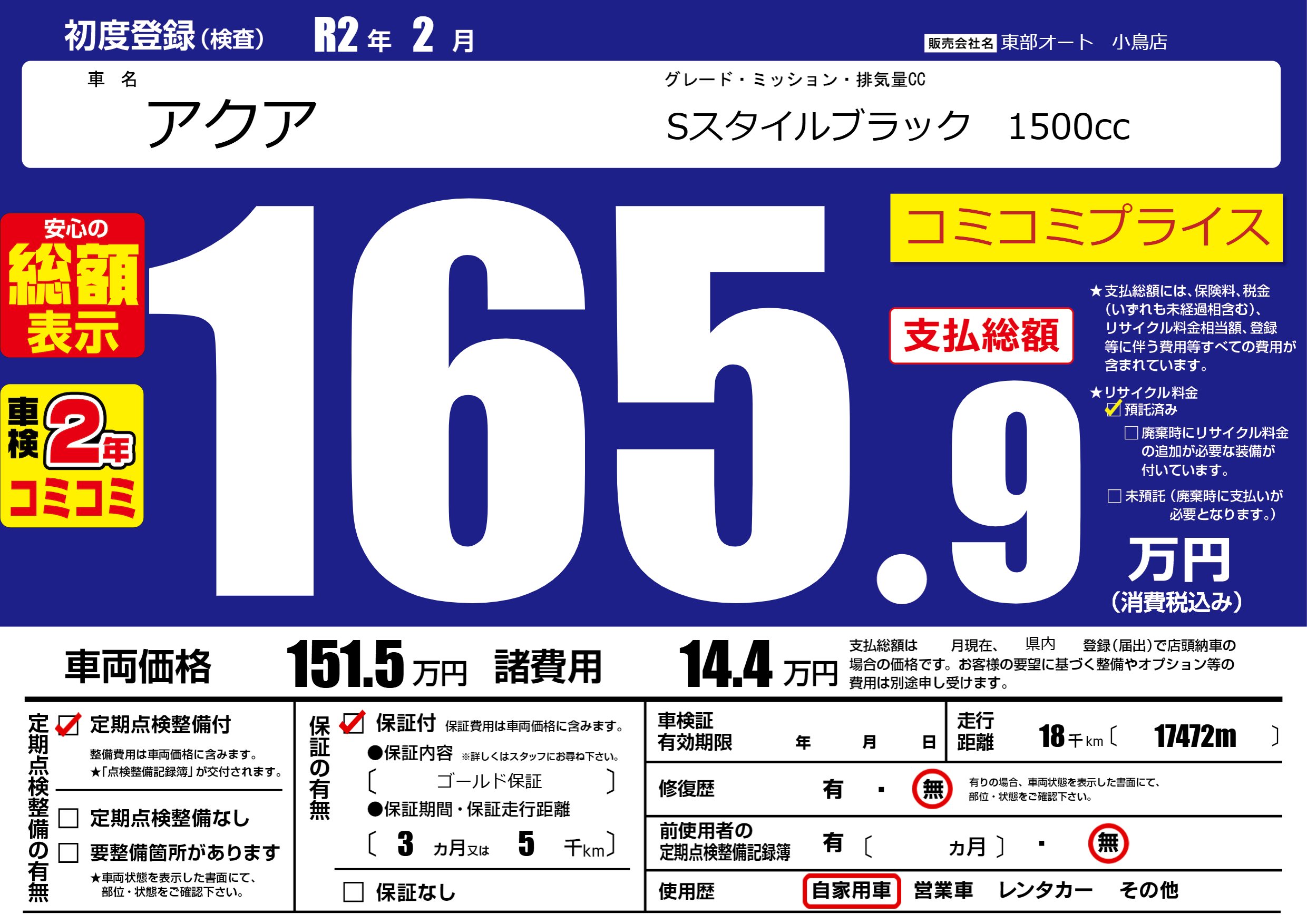 | 走行キロ | 1.8万km | ||