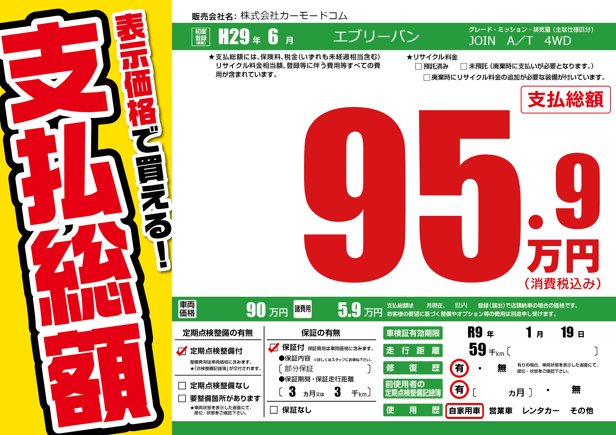| 車名 | エブリーバン | グレード ミッション 排気量 |