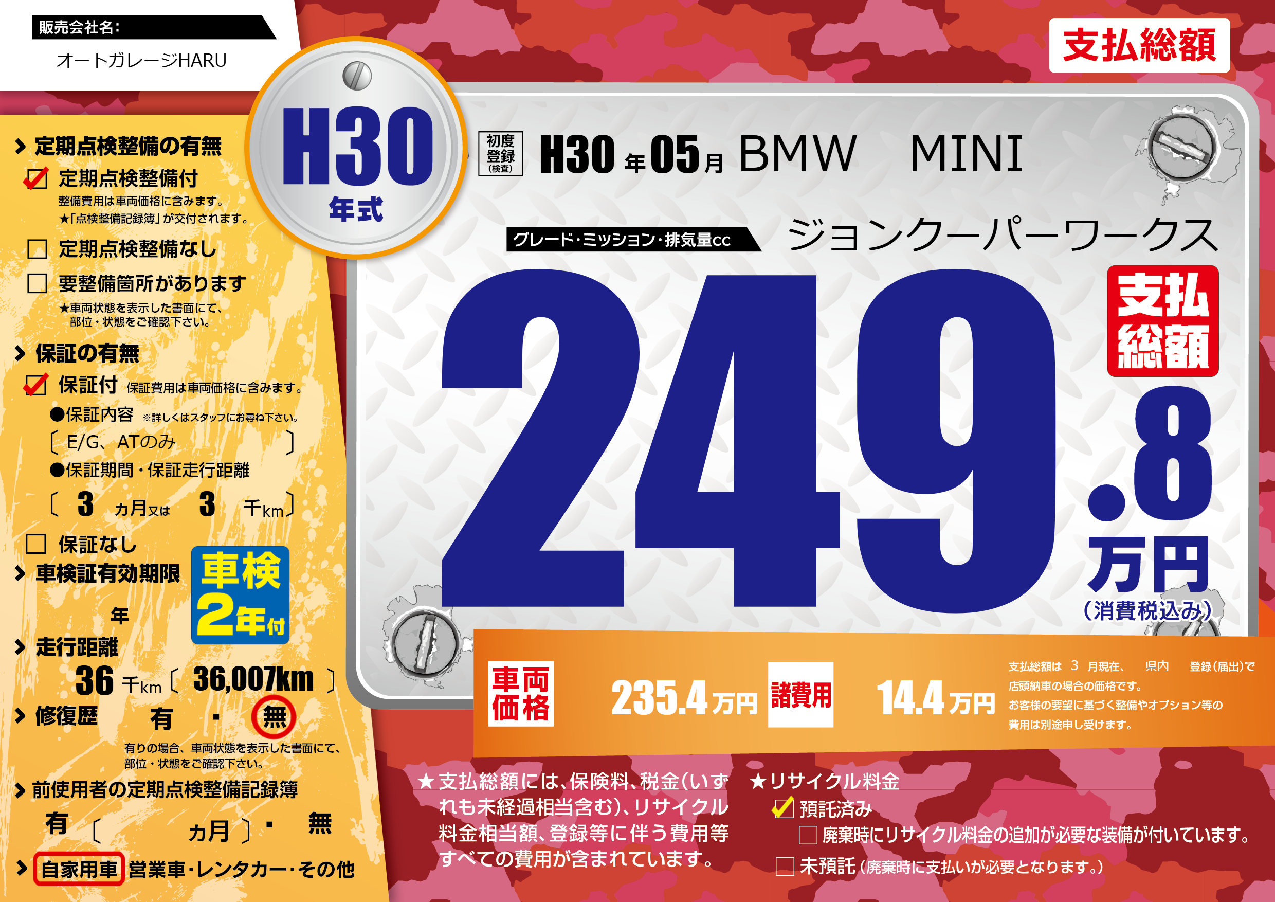 | 走行キロ | 3.6万km | ||