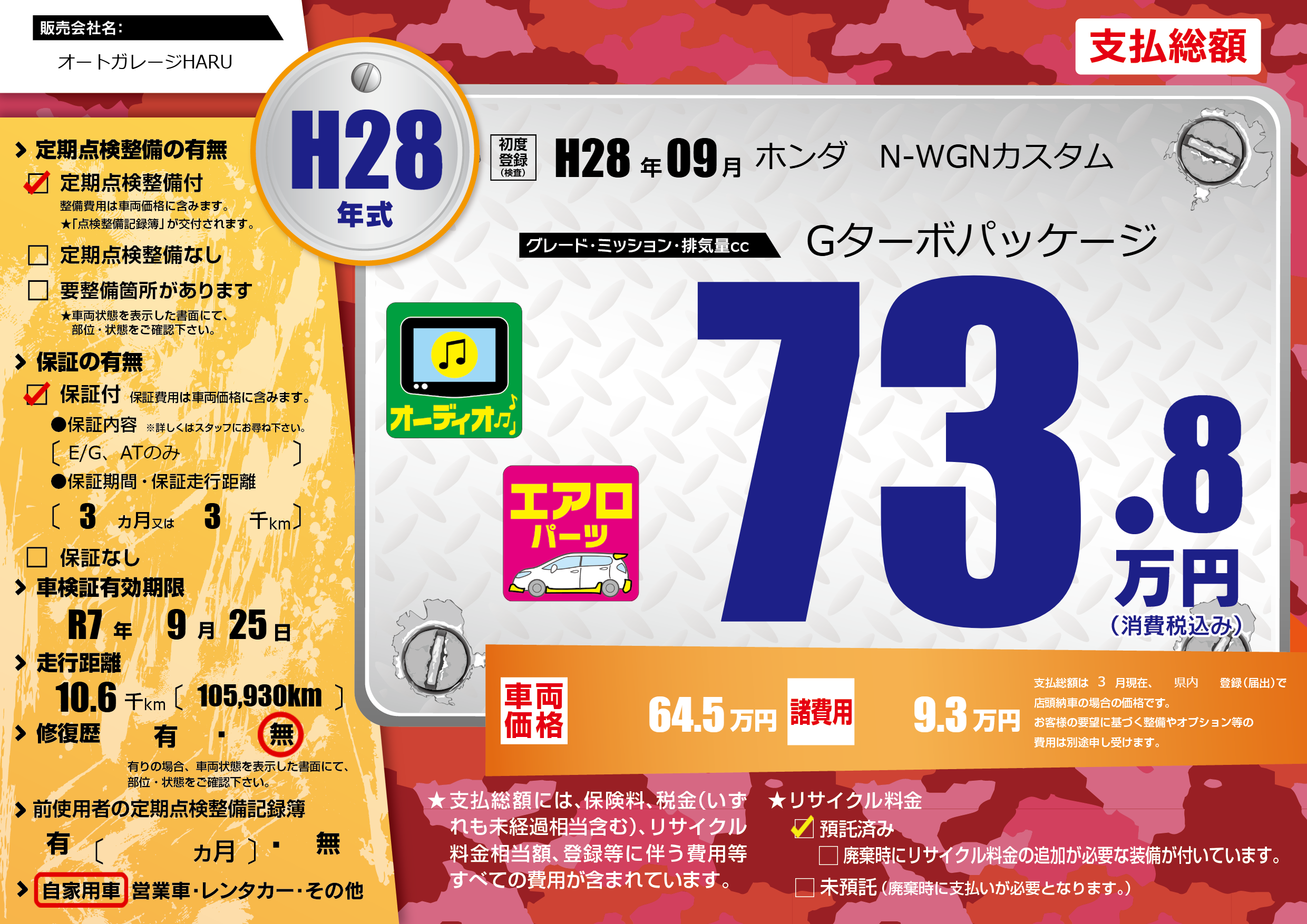 | 車検制限 | R7年 9月 25日 | ||