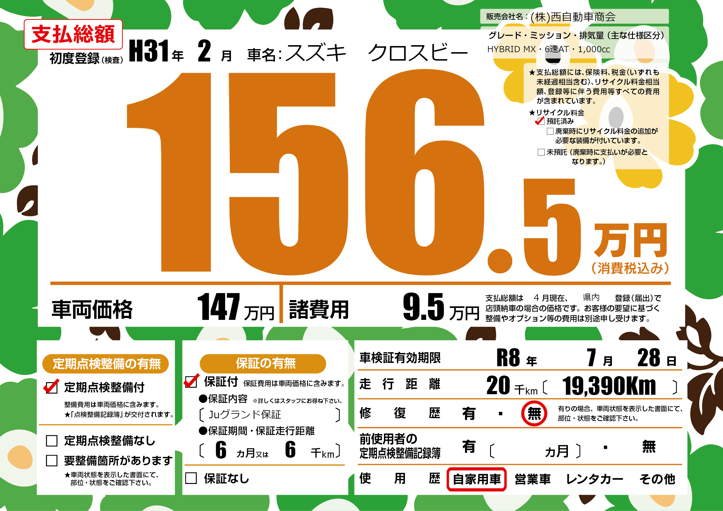 なし | 車検制限 | R8年7月28月 |