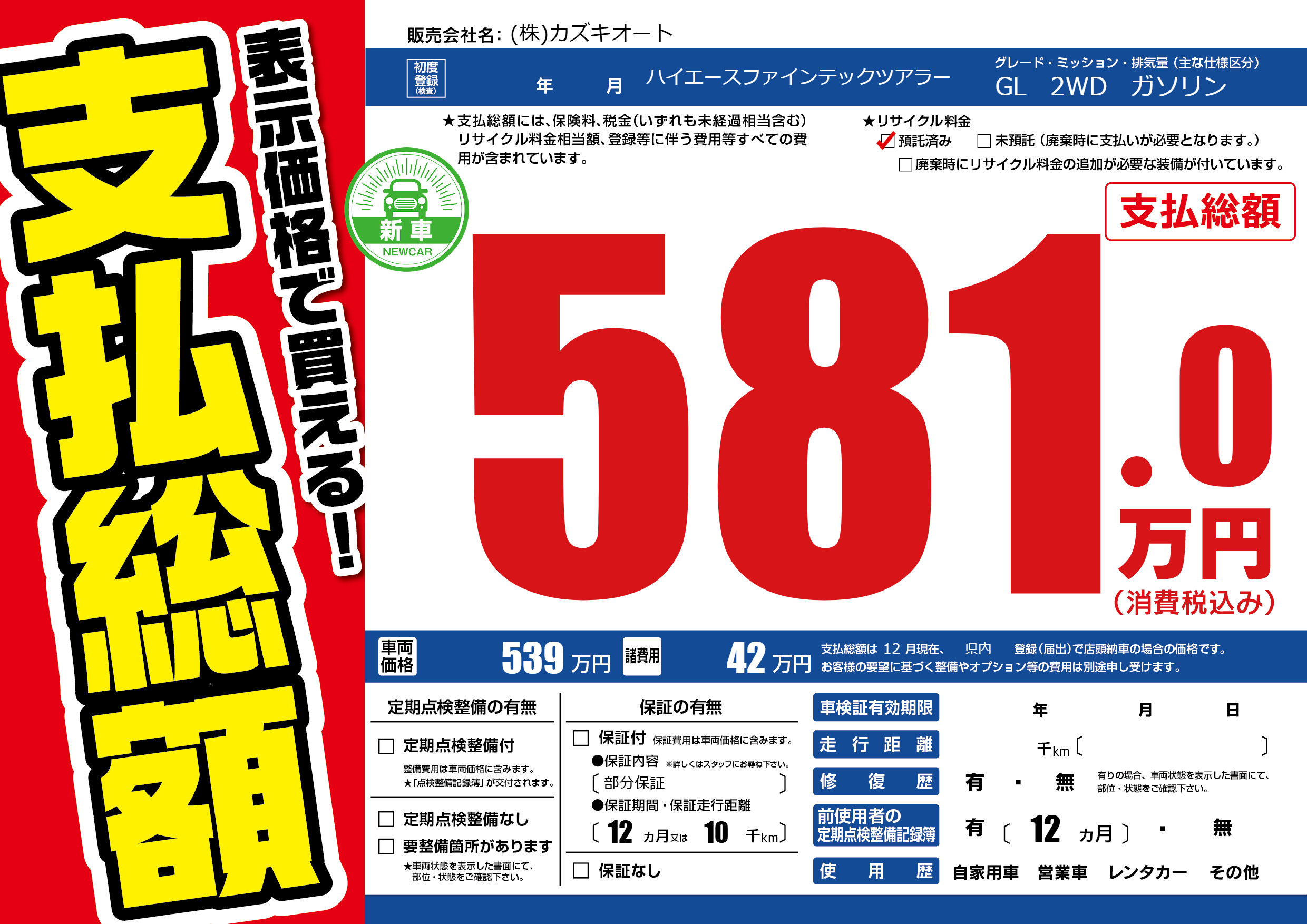 保証なし 保証内容(部分保証) 12ヶ月または(10)千kmまで |
