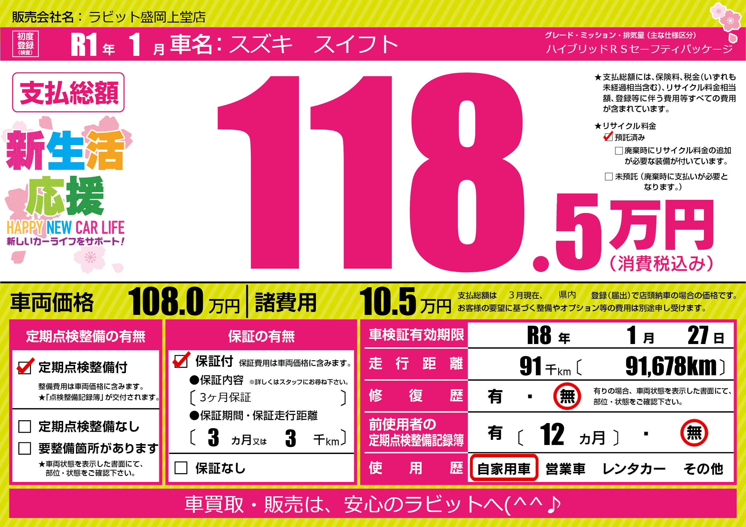 保証内容(3ヶ月保証) 3ヶ月または3千km