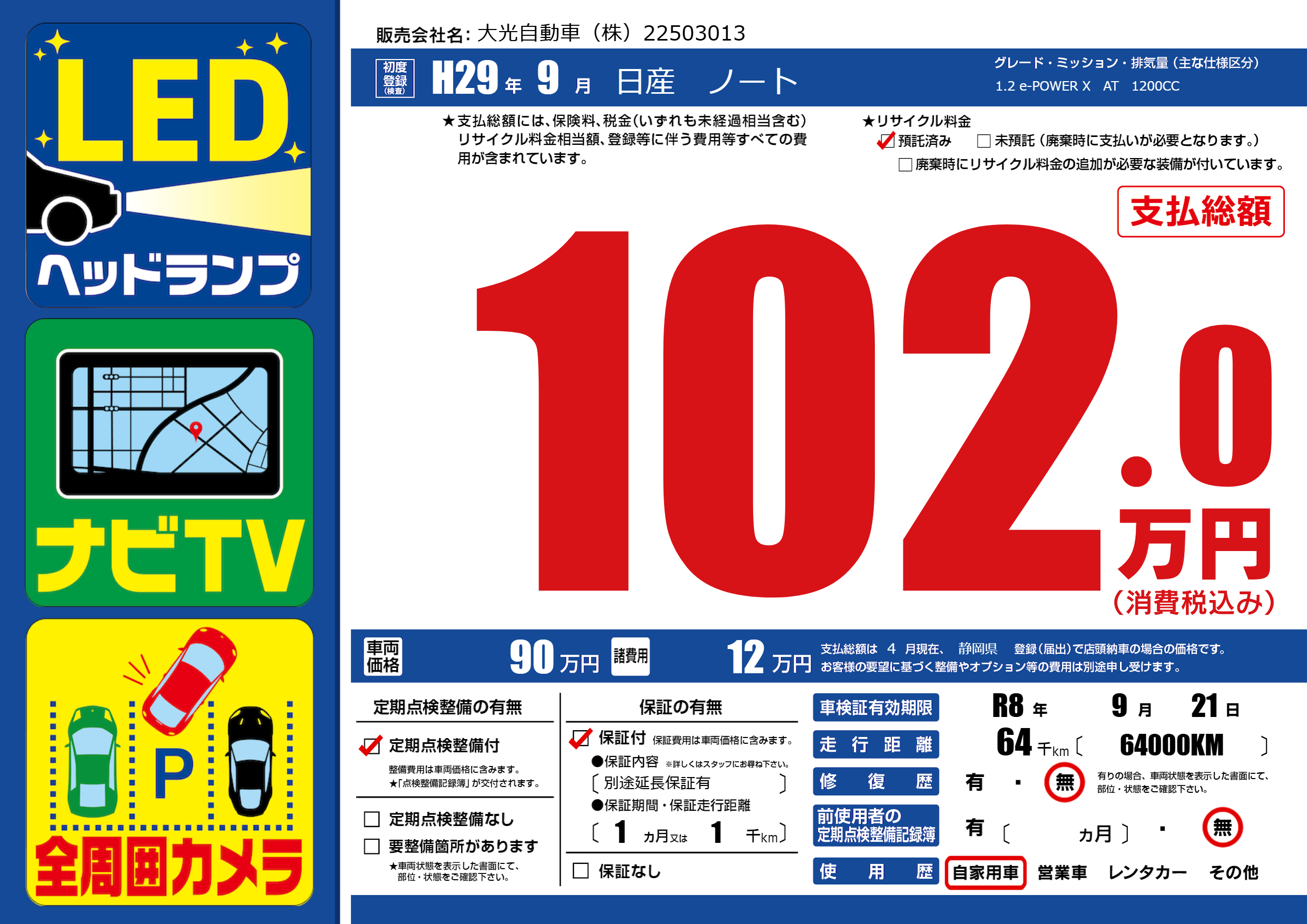 | 定期点検整備 | 定期点検整備あり | ||