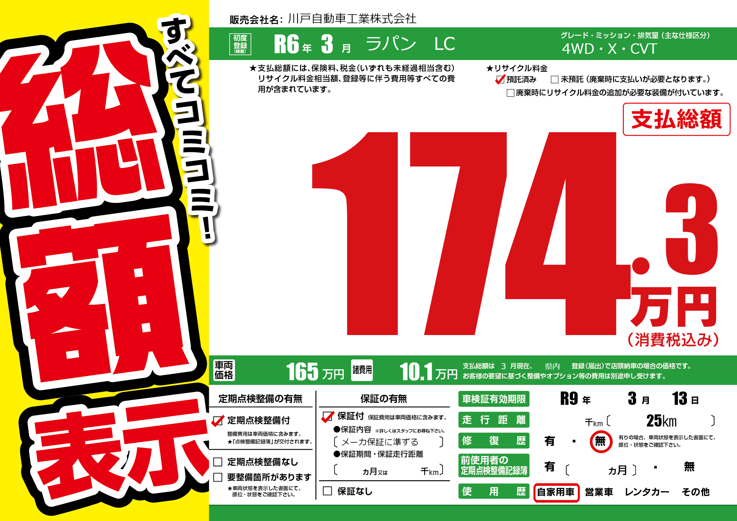 なし | 車検制限 | R9年3月13月 |