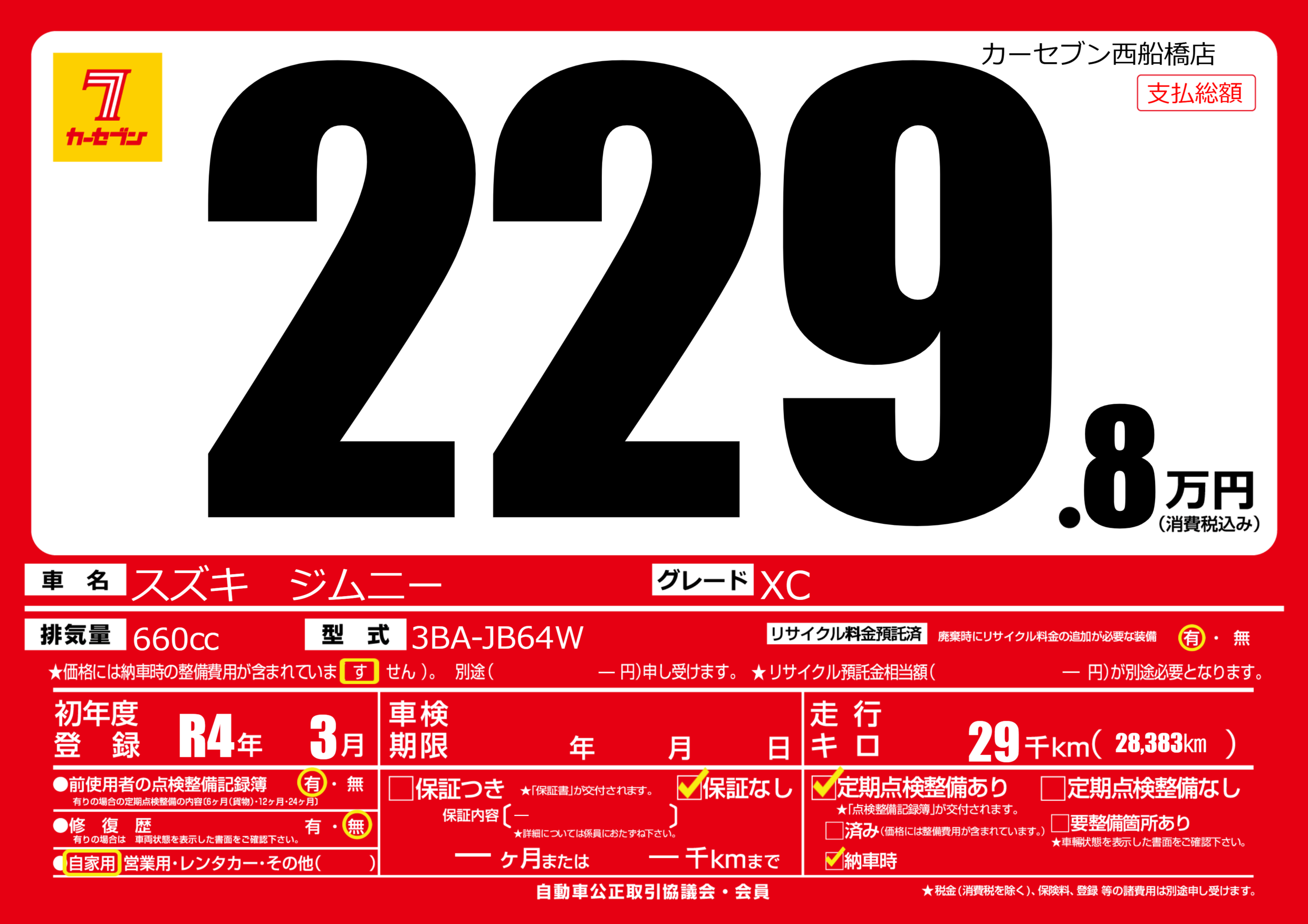 | 走行キロ | 2.9万km | 初年度登録 | R4年3月 |