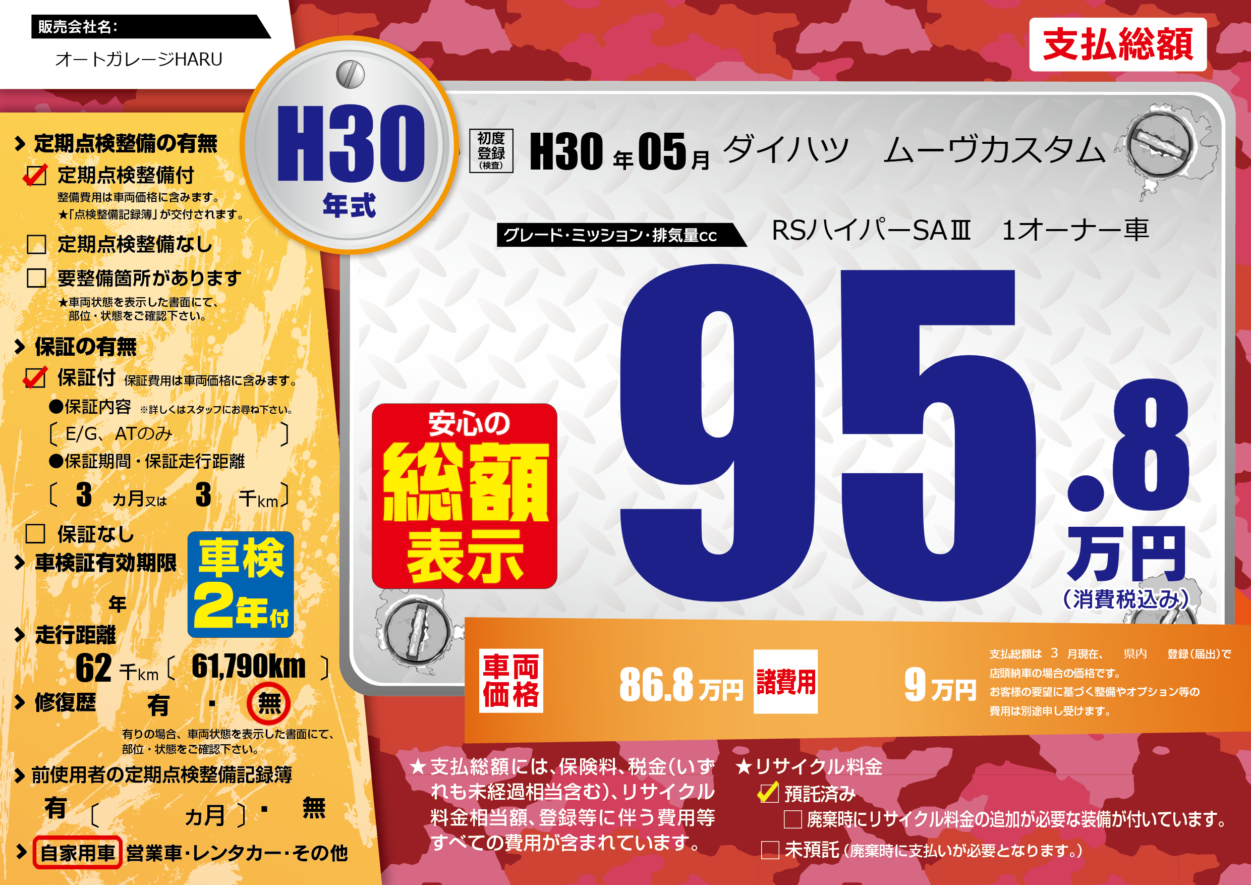 | 走行キロ | 6.2万km | ||