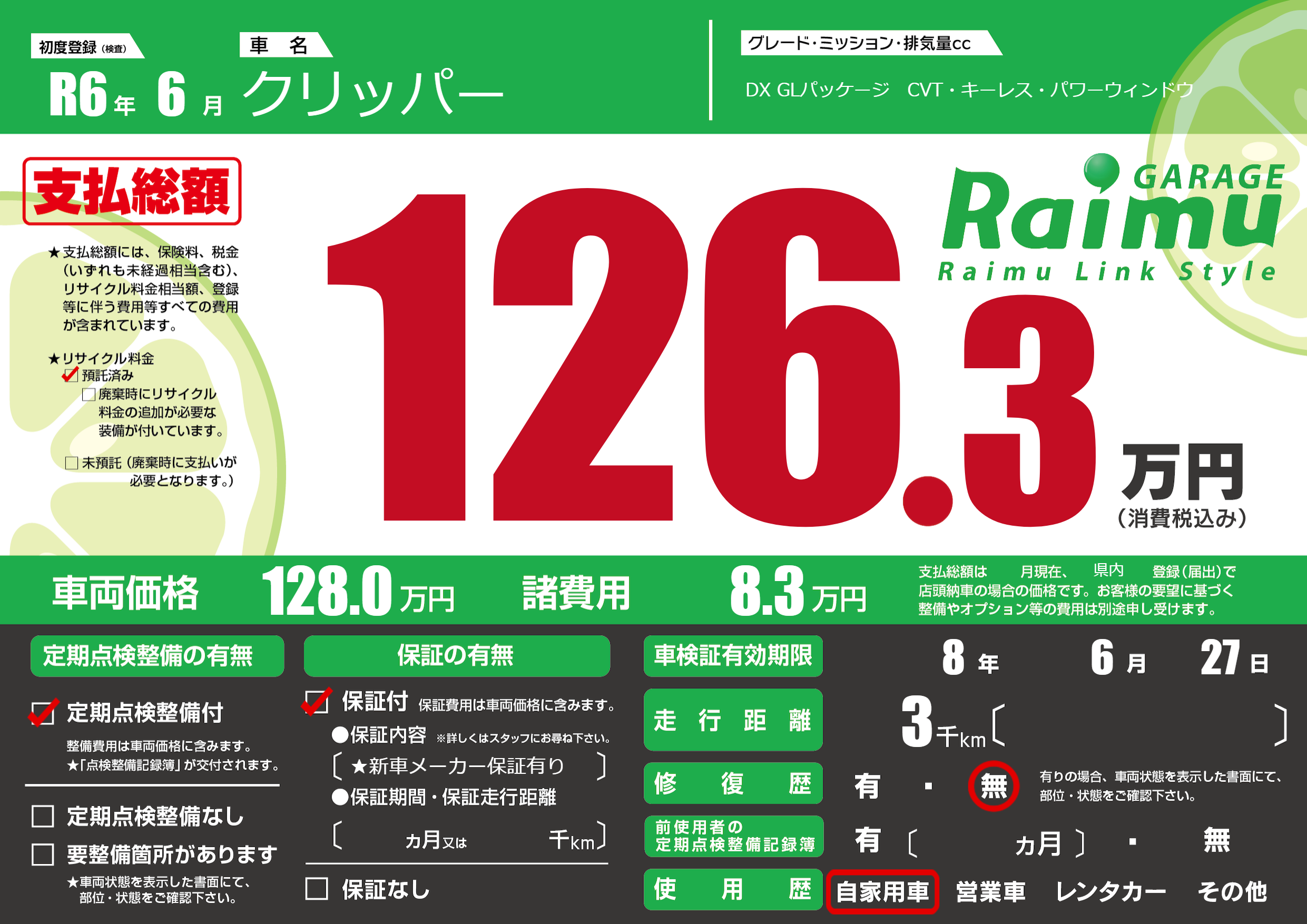 | 車検制限 | 8年 6月 27日 | ||