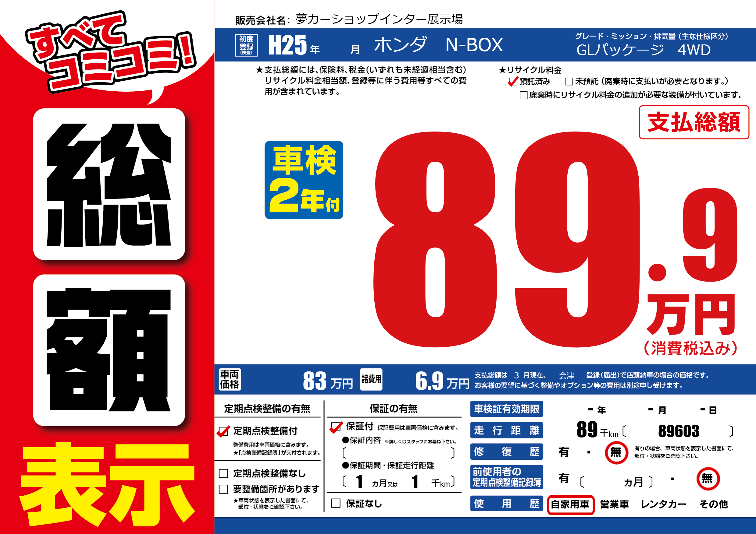 | 走行キロ | 8.9万km | ||