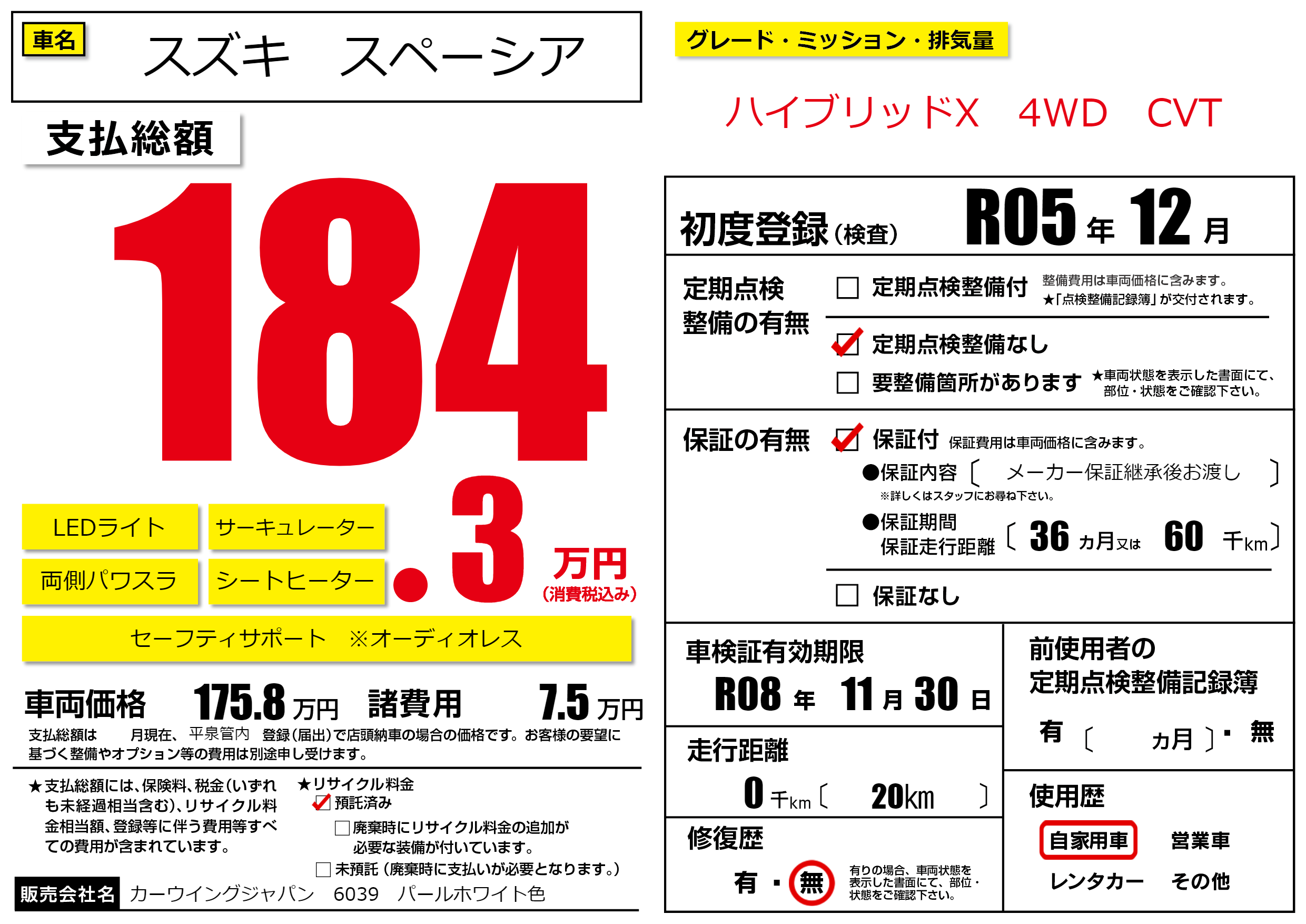 なし | 車検制限 | R08年11月30月 |