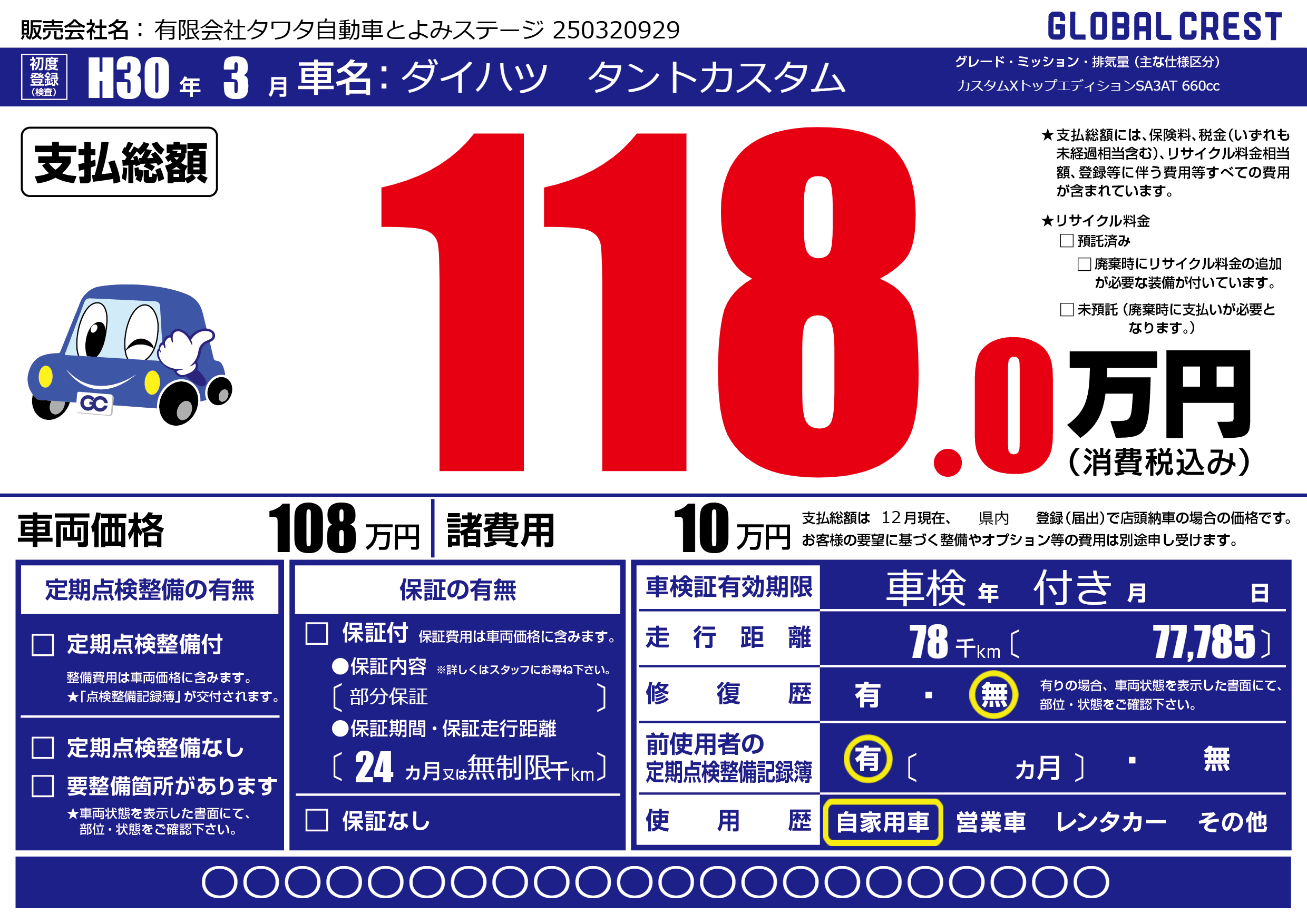 | 走行キロ | 7.8万km | ||