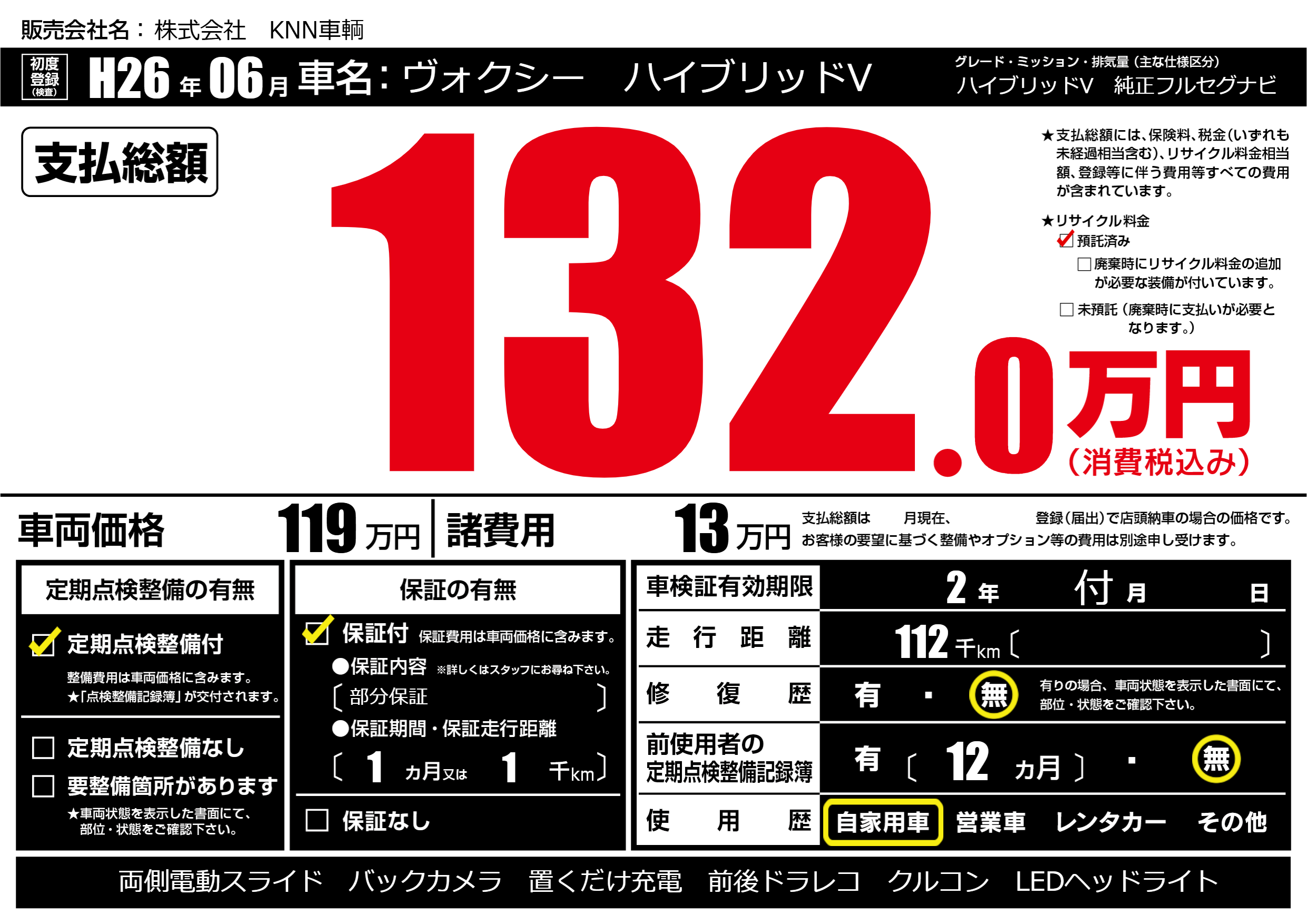 | 走行キロ | 11.2万km | 初年度登録 | H26年06月 |