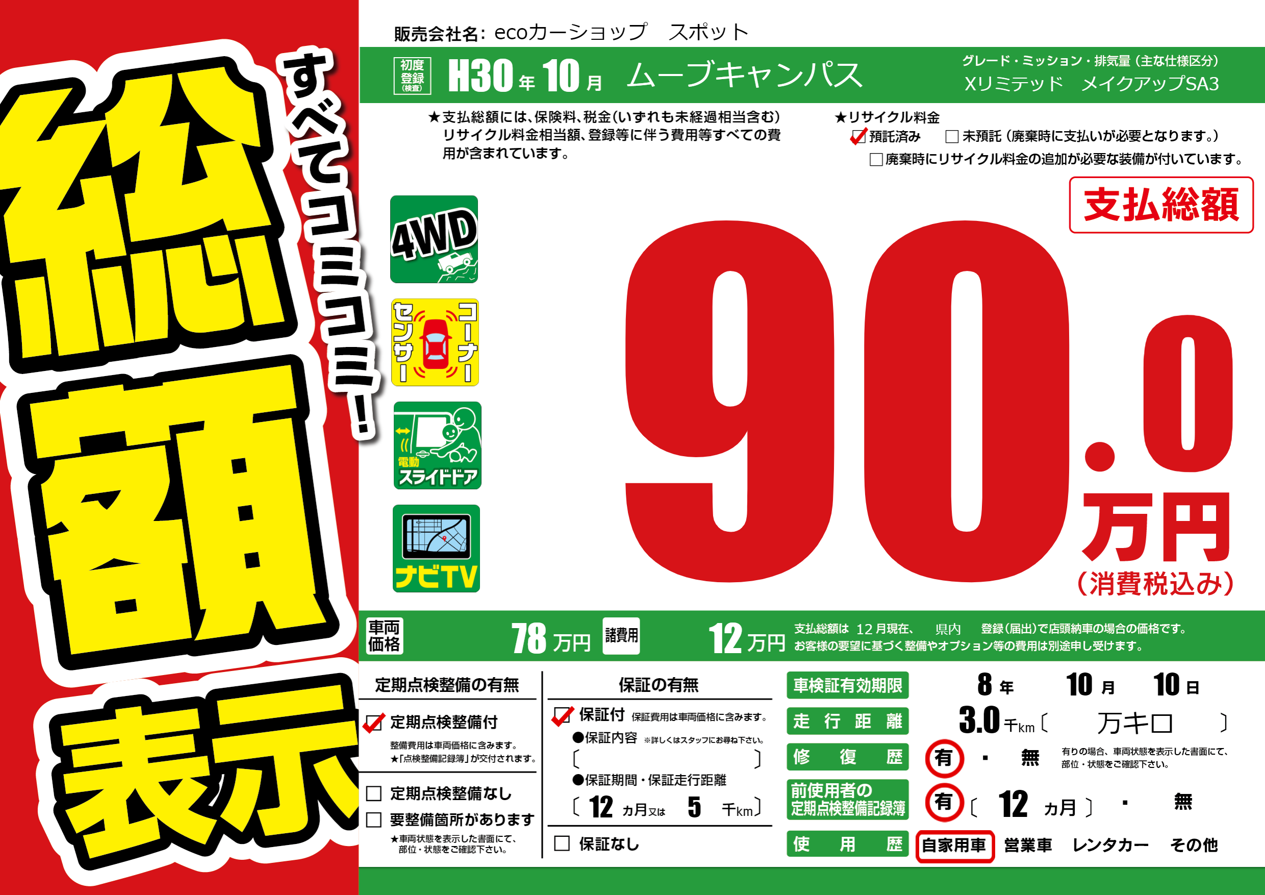 | 車検制限 | 8年 10月 10日 | ||