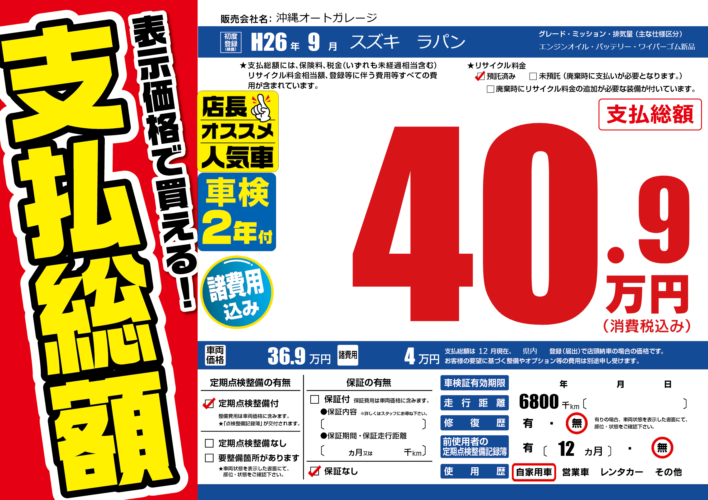 | 初年度登録 | H26年9月 | ||