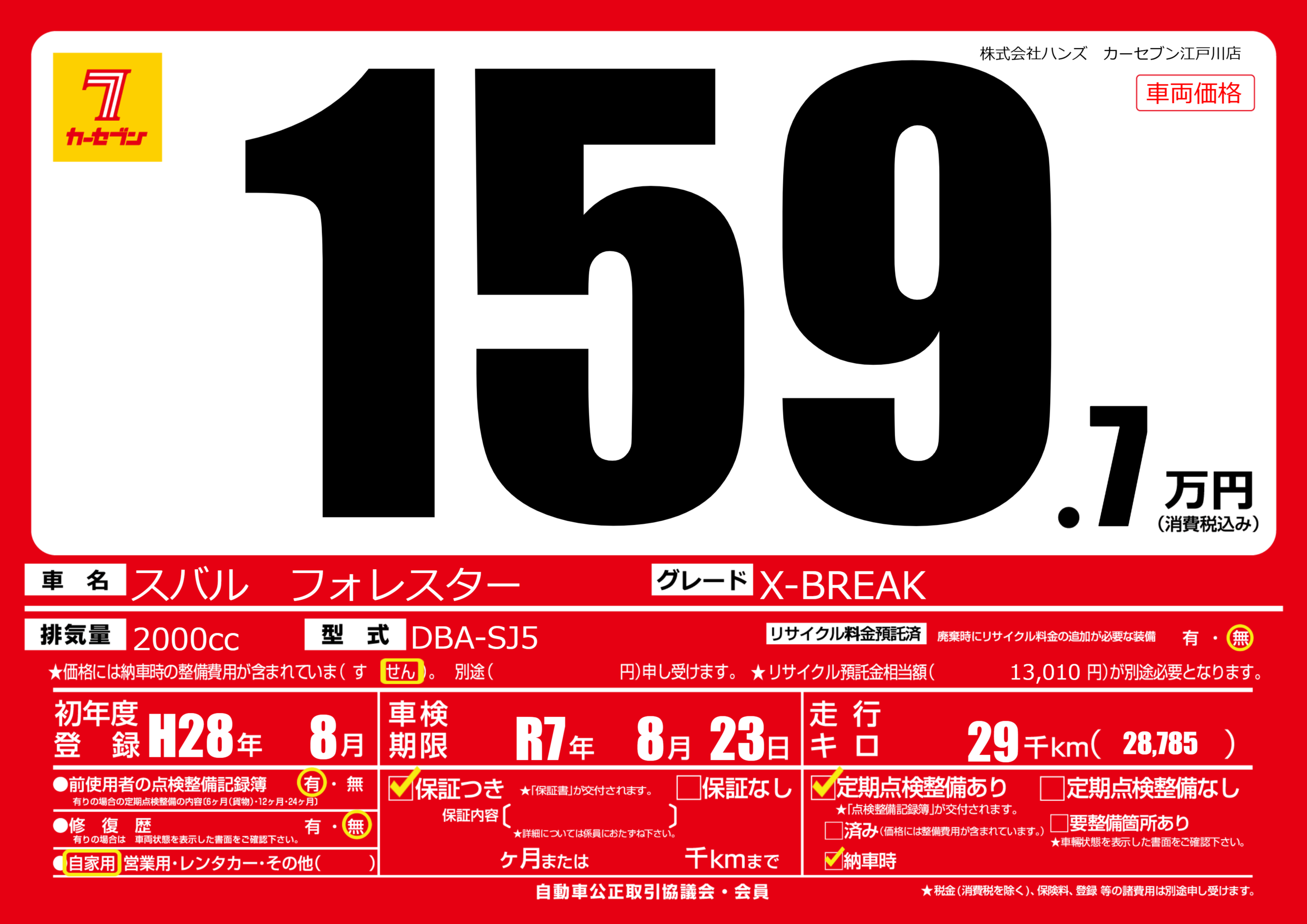 | 車検制限 | R7年 8月 23日 | ||