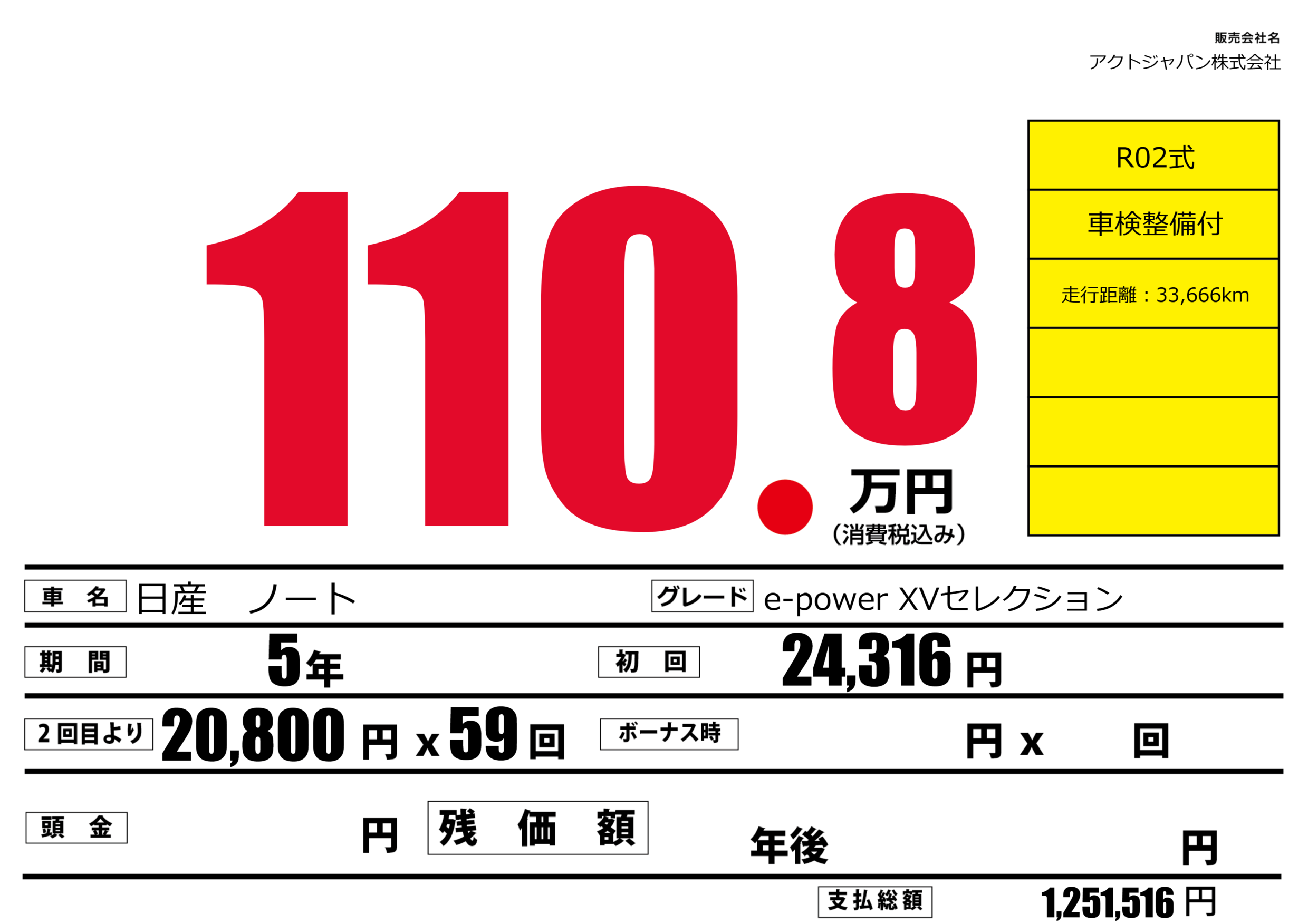 | 車名 | 日産 ノート | グレード ミッション 排気量 |