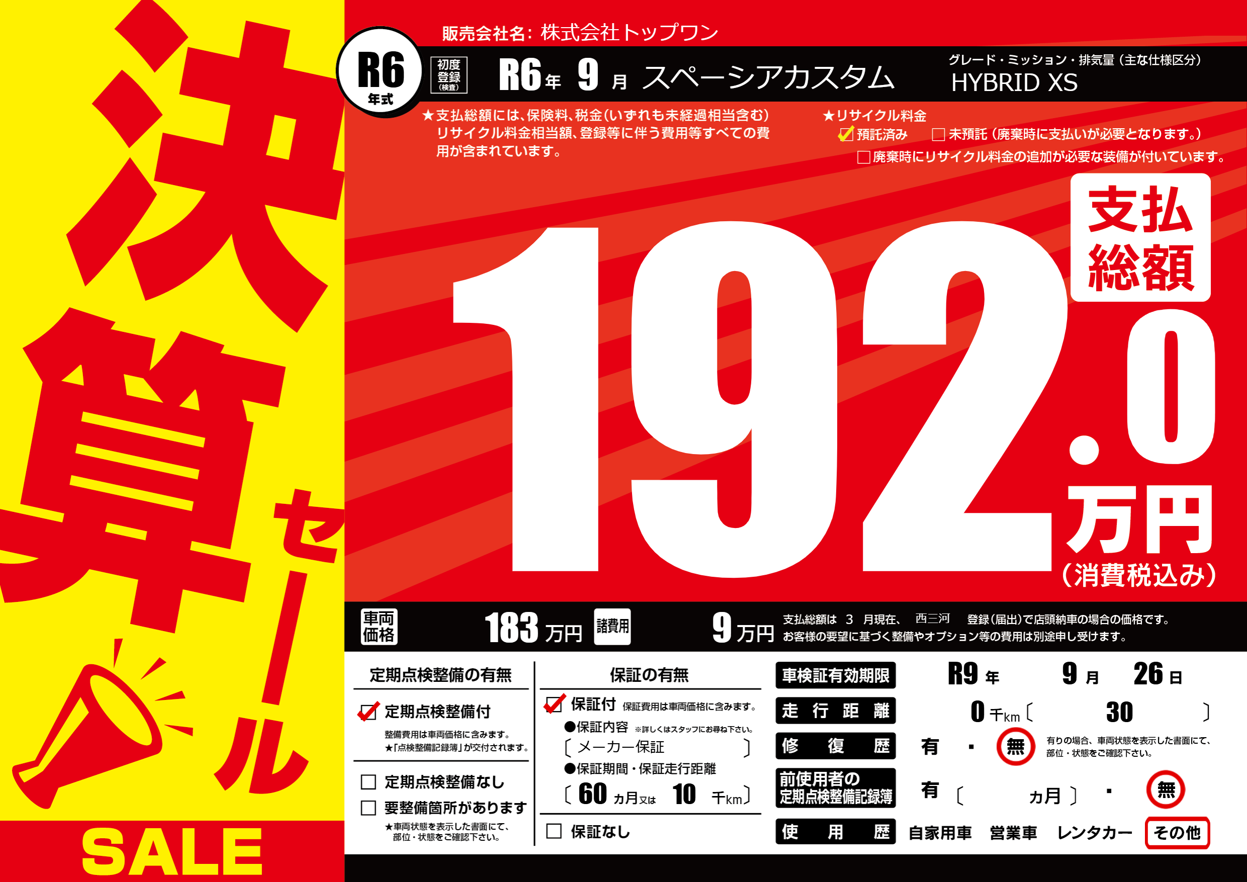 | 走行キロ | - | 初年度登録 | R6年9月 |