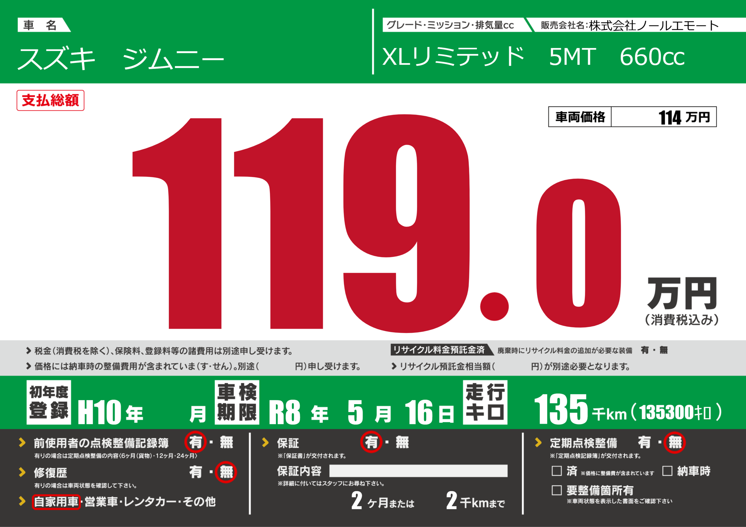 なし | 車検制限 | R8年5月16月 |