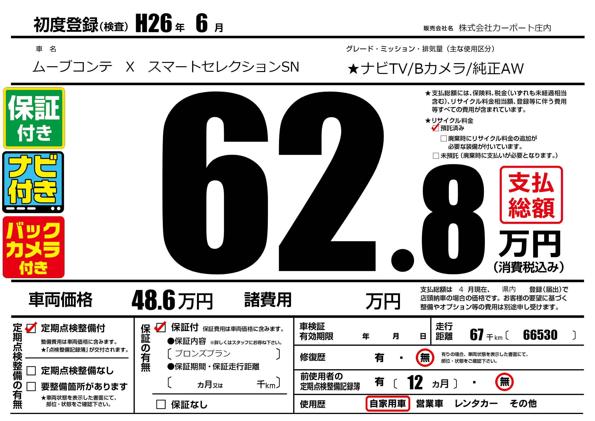 | 初年度登録 | H26年6月 | ||