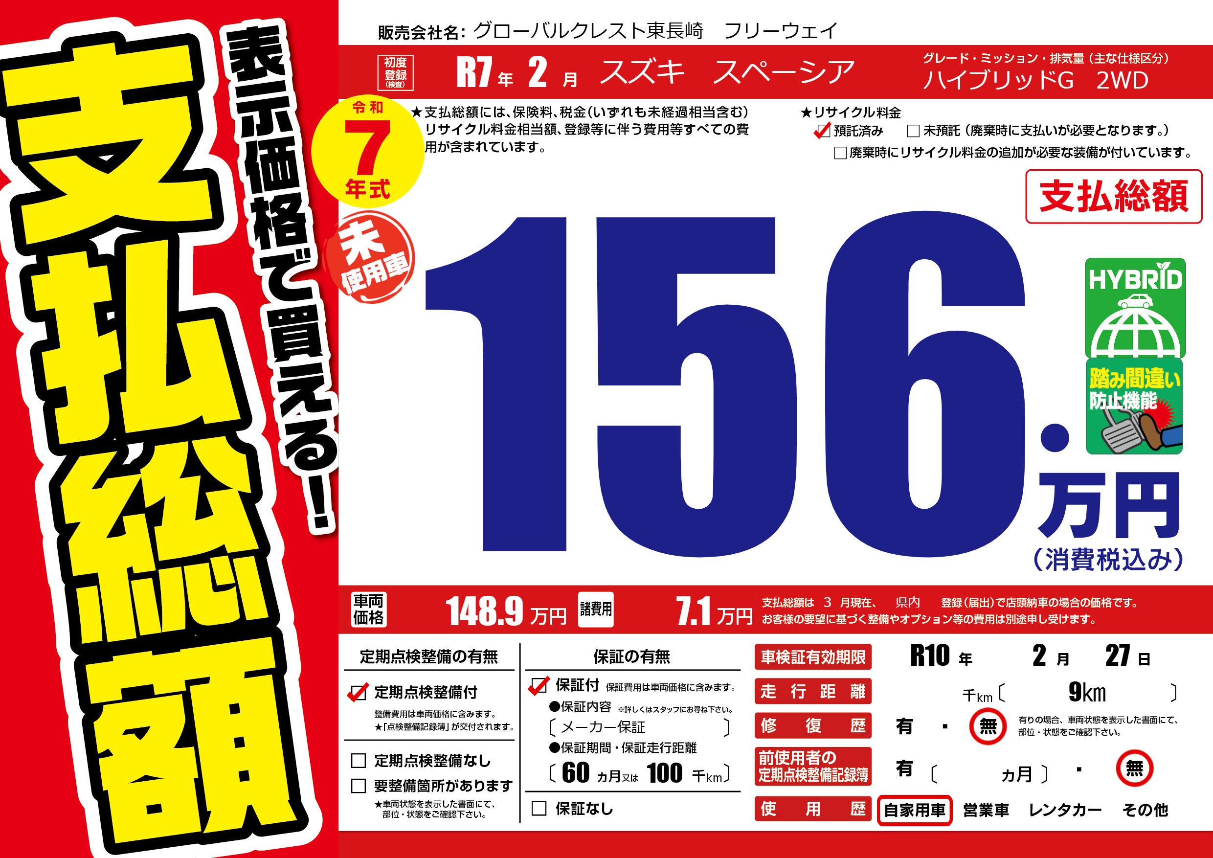 | 走行キロ | - | 初年度登録 | R7年2月 |