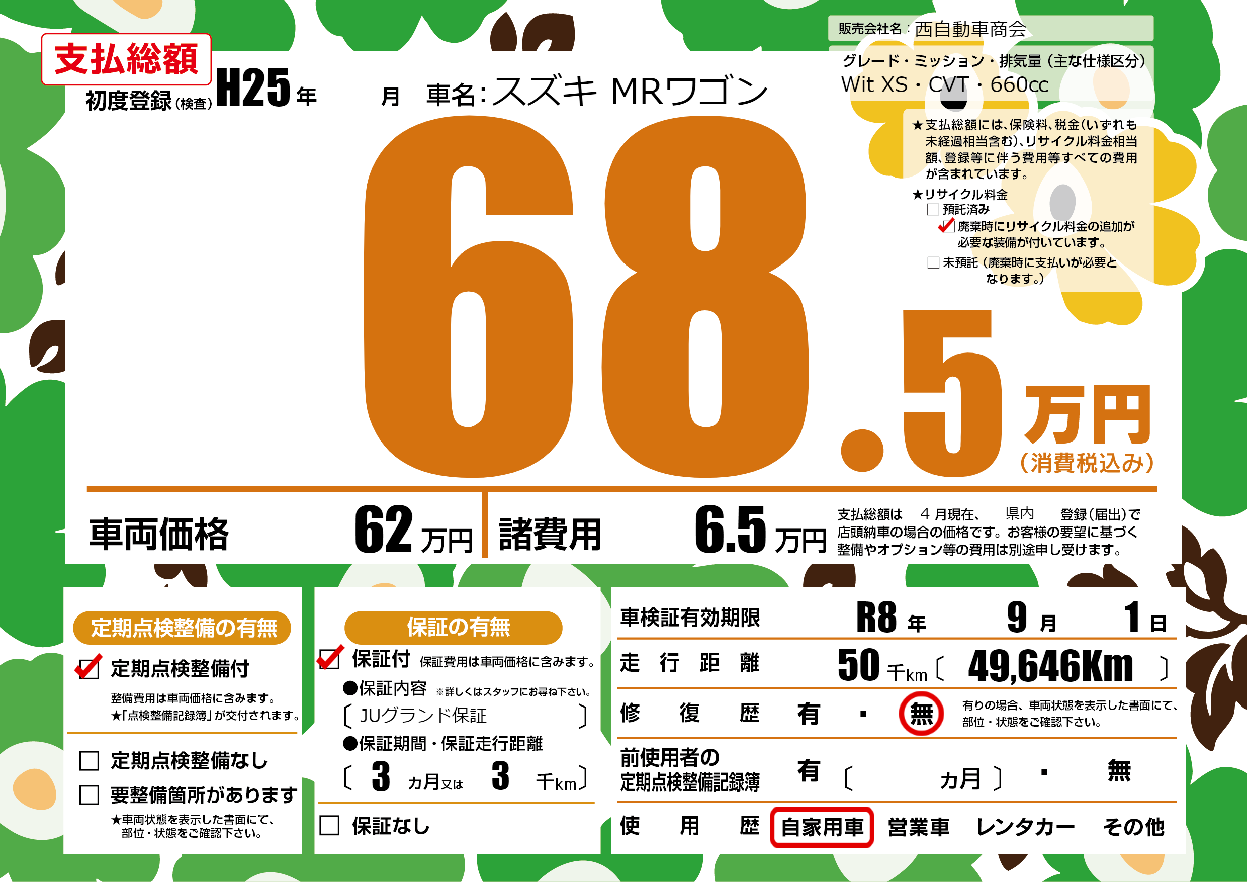 | 車検制限 | R8年 9月 1日 | ||
