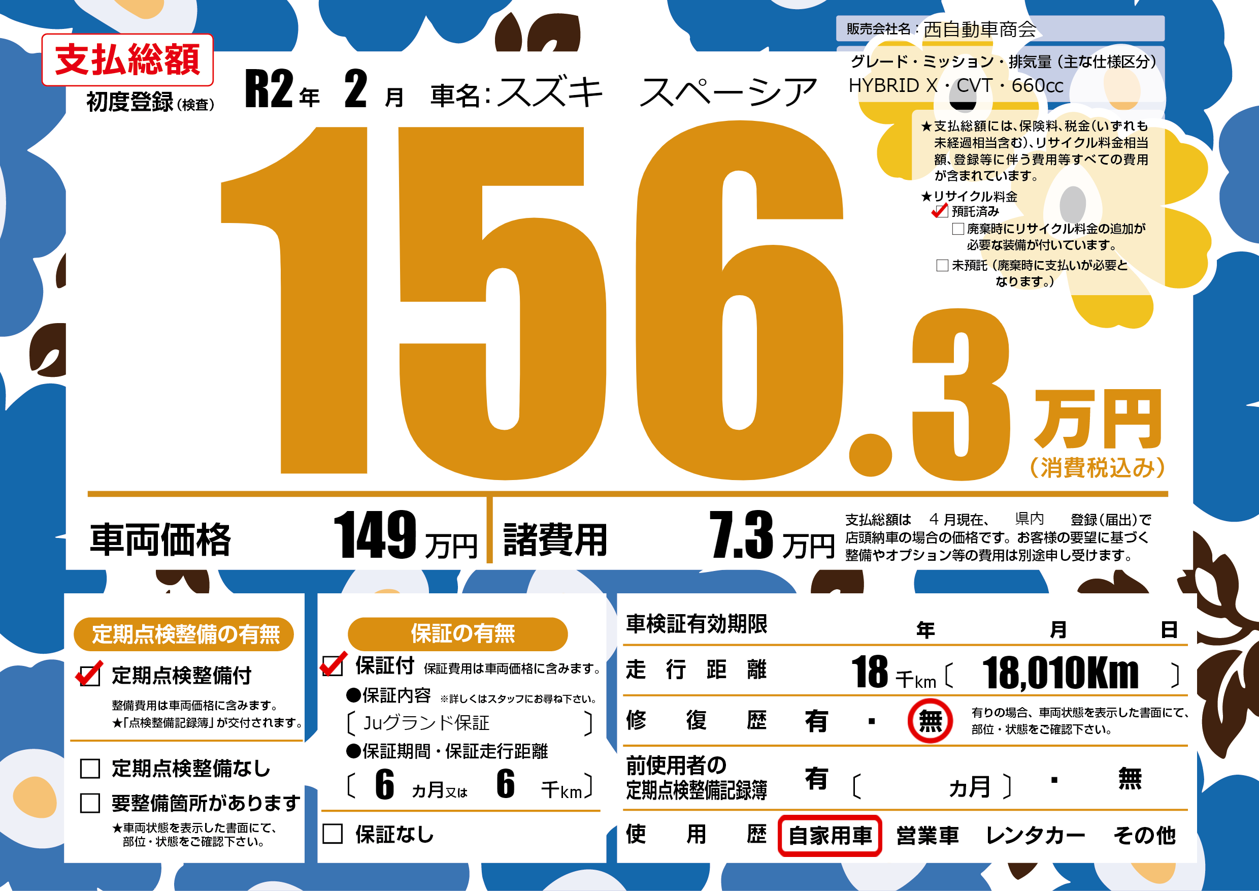 | 定期点検整備 | 定期点検整備あり | ||