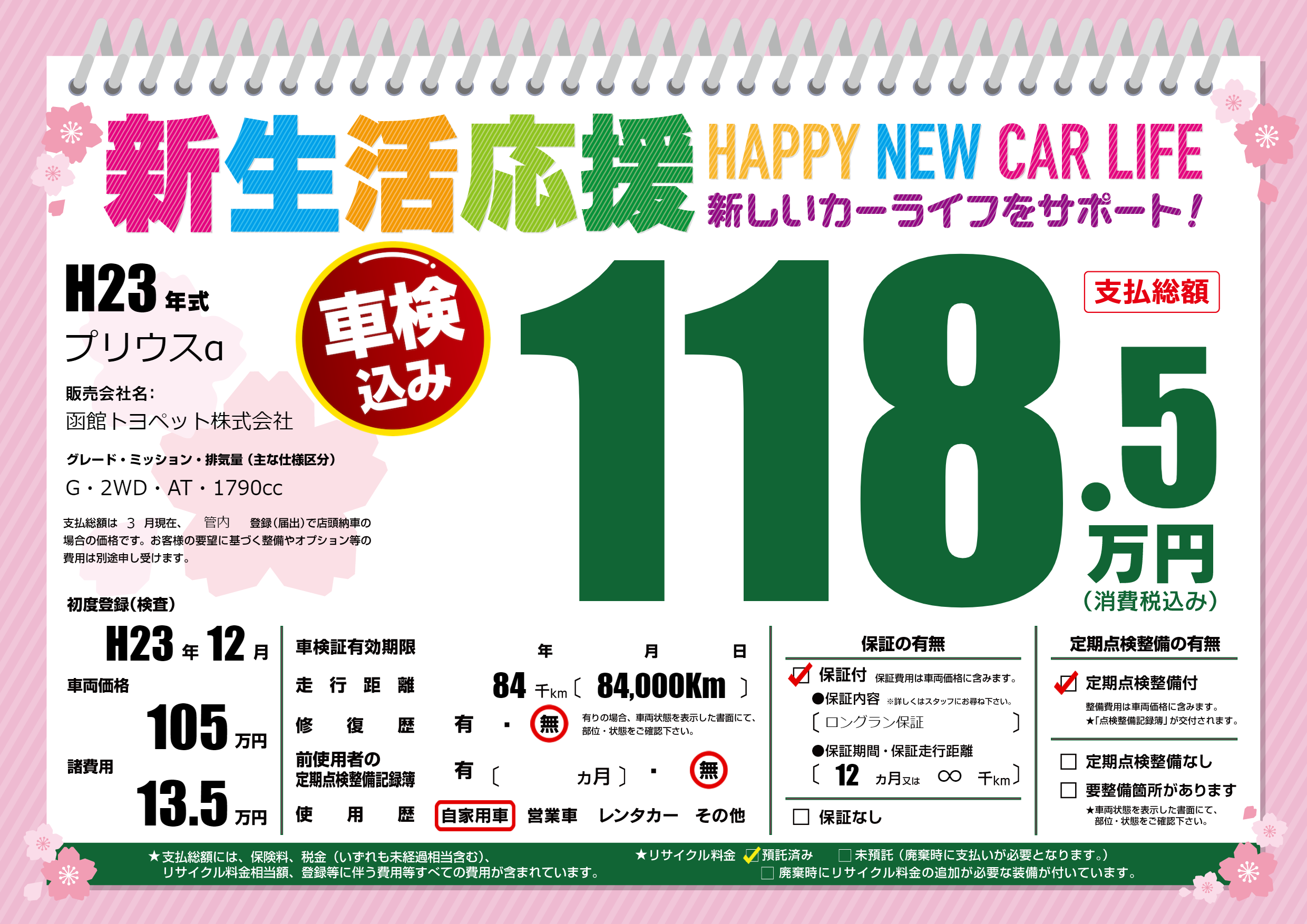 | 定期点検整備 | 定期点検整備あり | ||