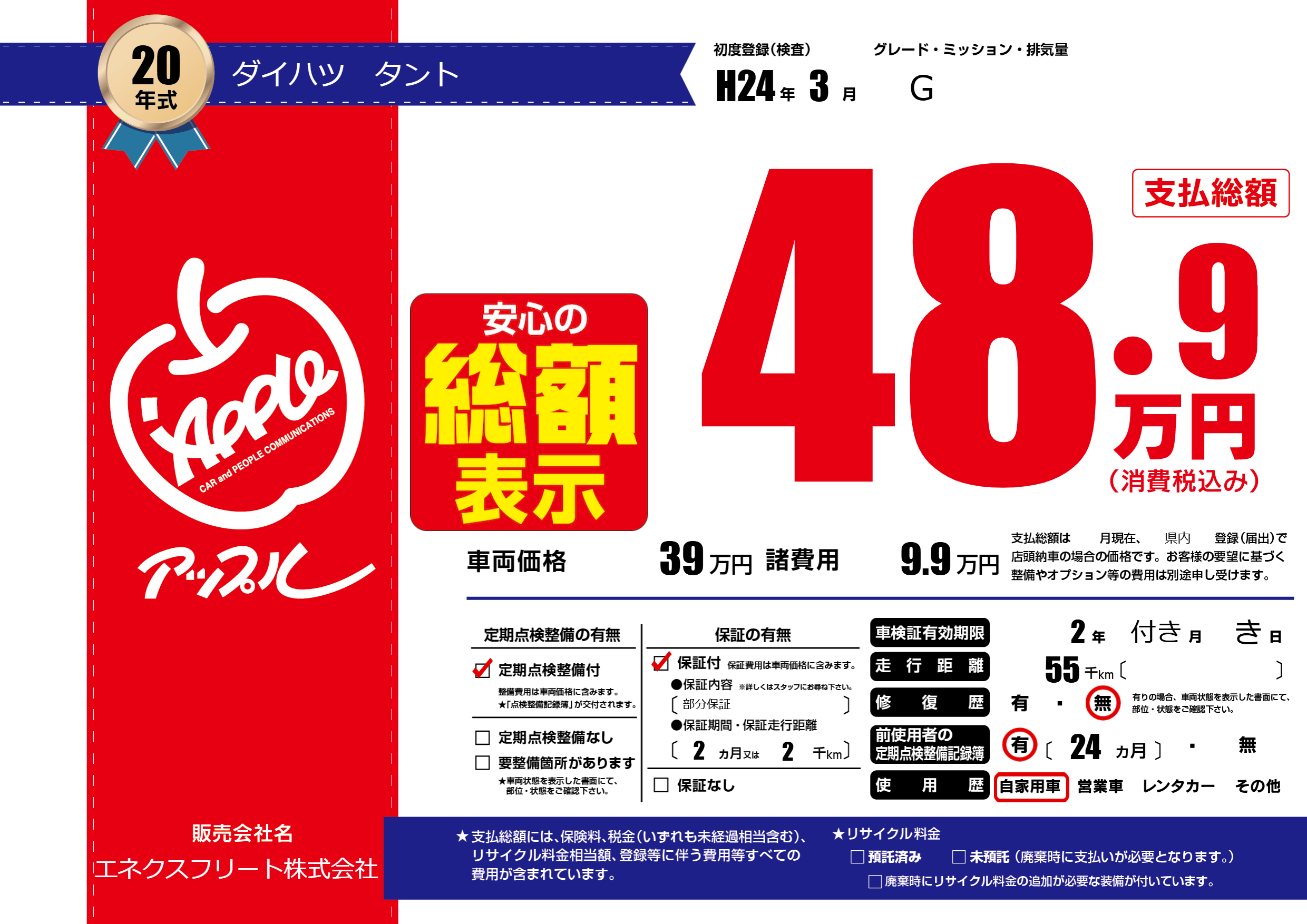 なし | 車検制限 | 2年付き月き月 |