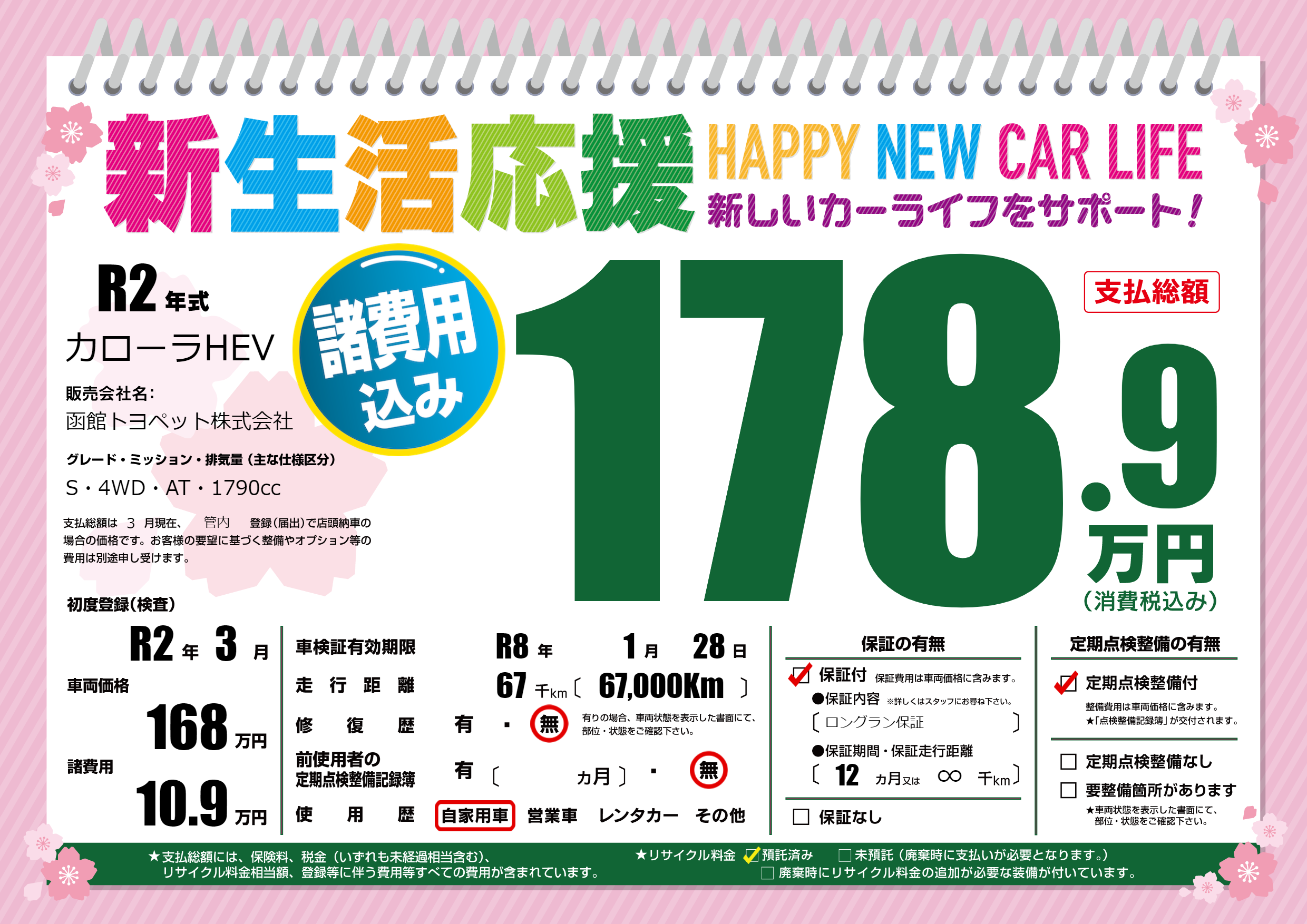 | 車名 | カローラHEV | グレード ミッション 排気量 |
