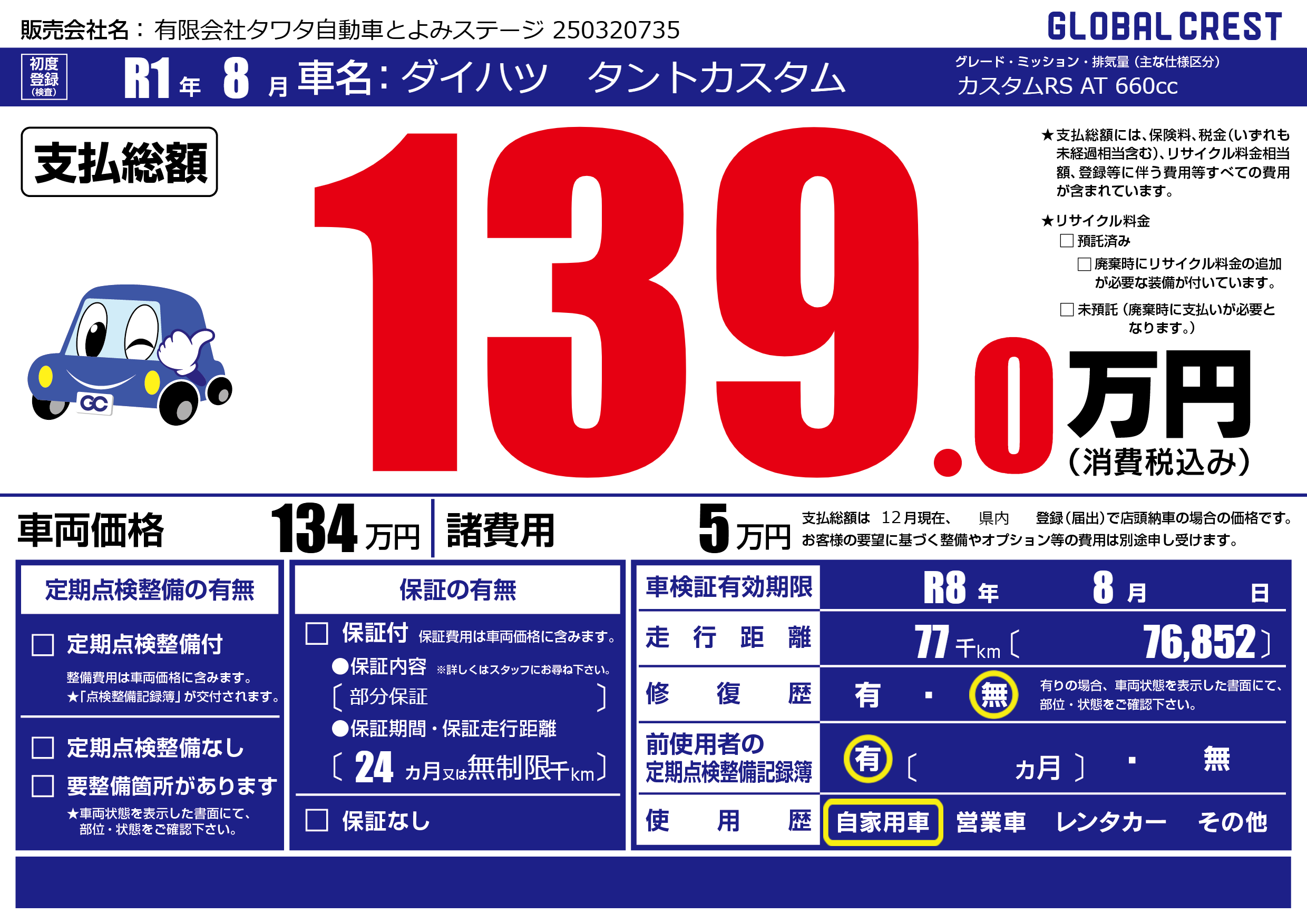 有限会社タワタ自動車とよみステージの展示車をすべて見る
