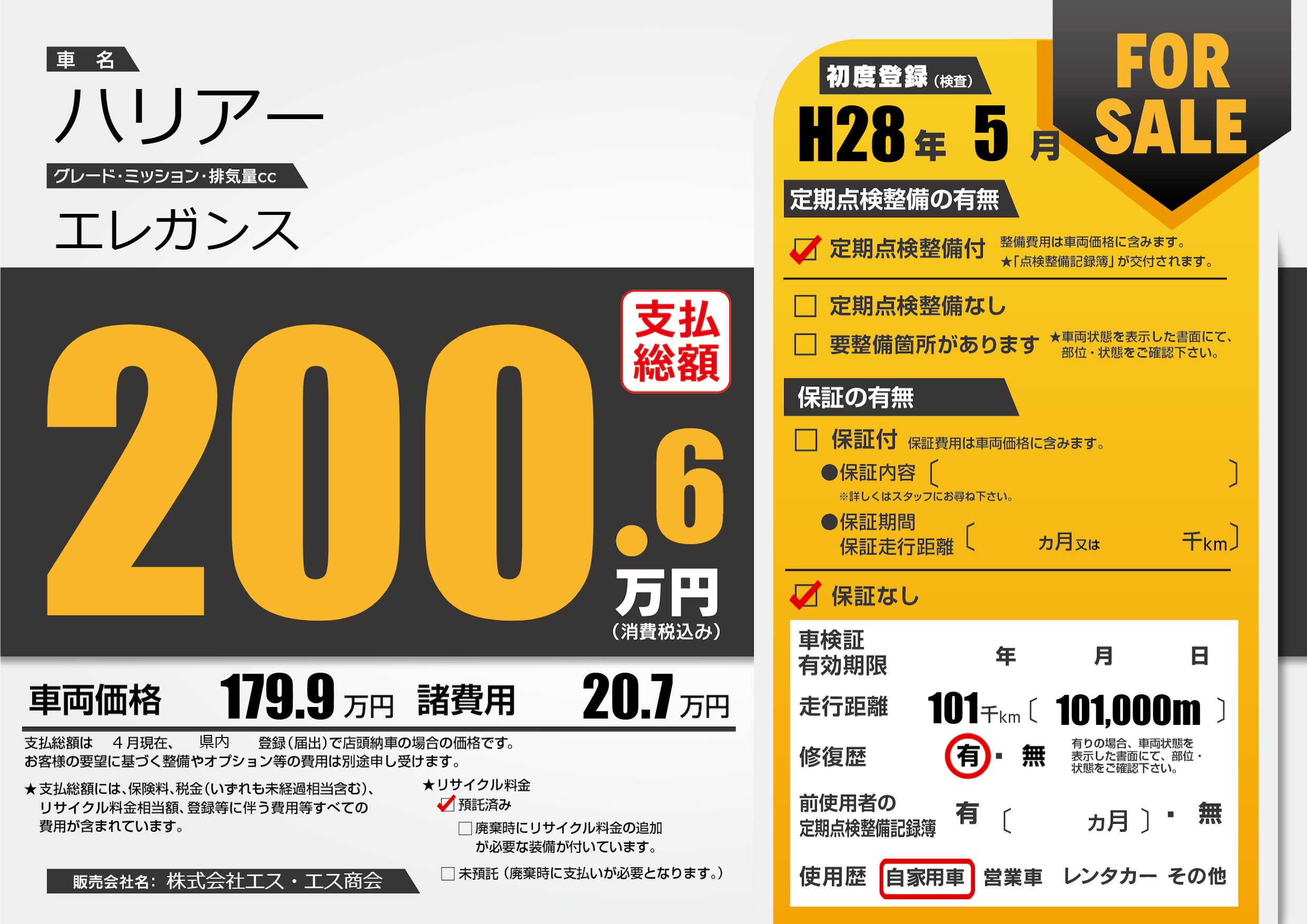 | 定期点検整備 | 定期点検整備あり | ||
