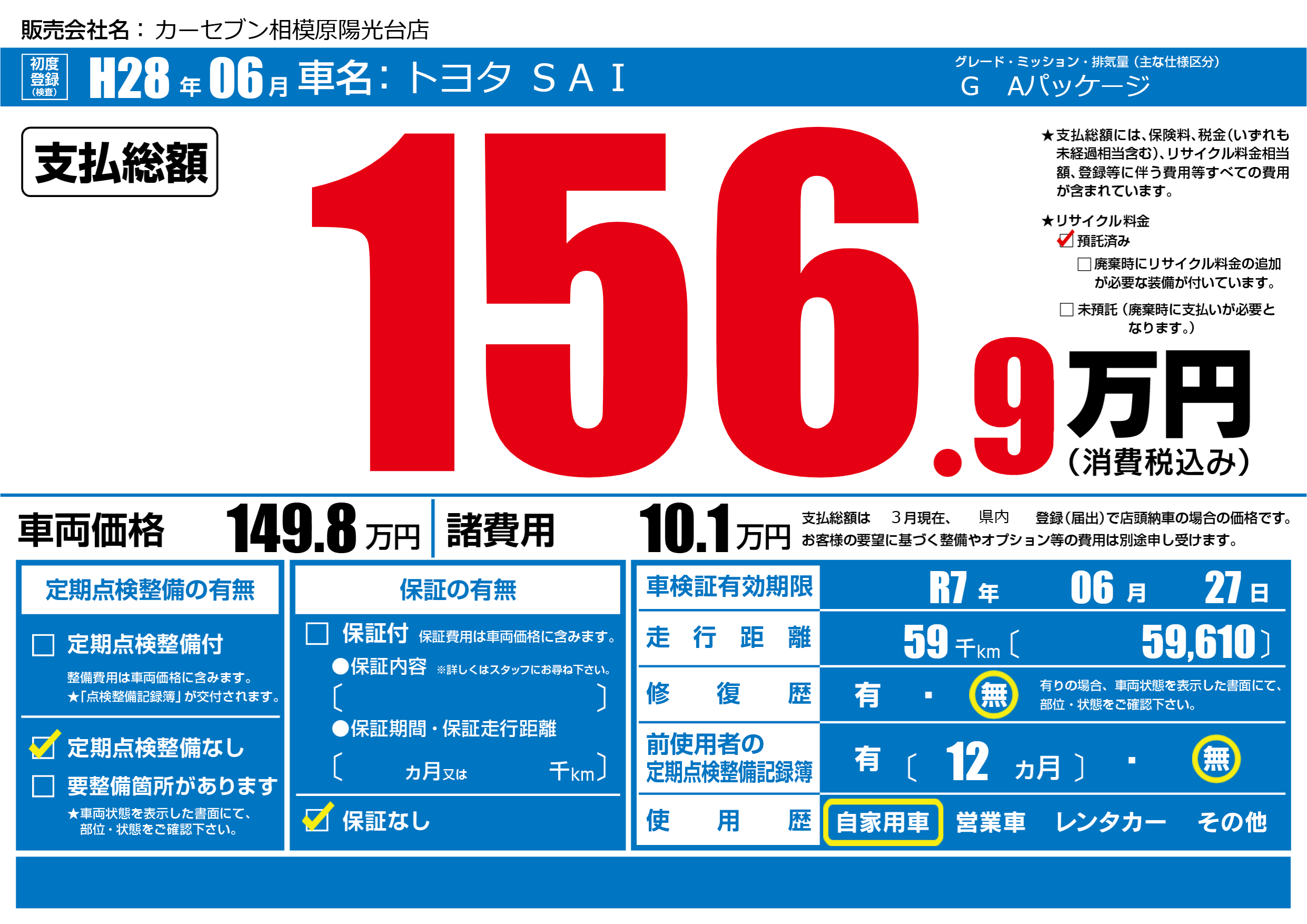 なし | 車検制限 | R7年06月27月 |