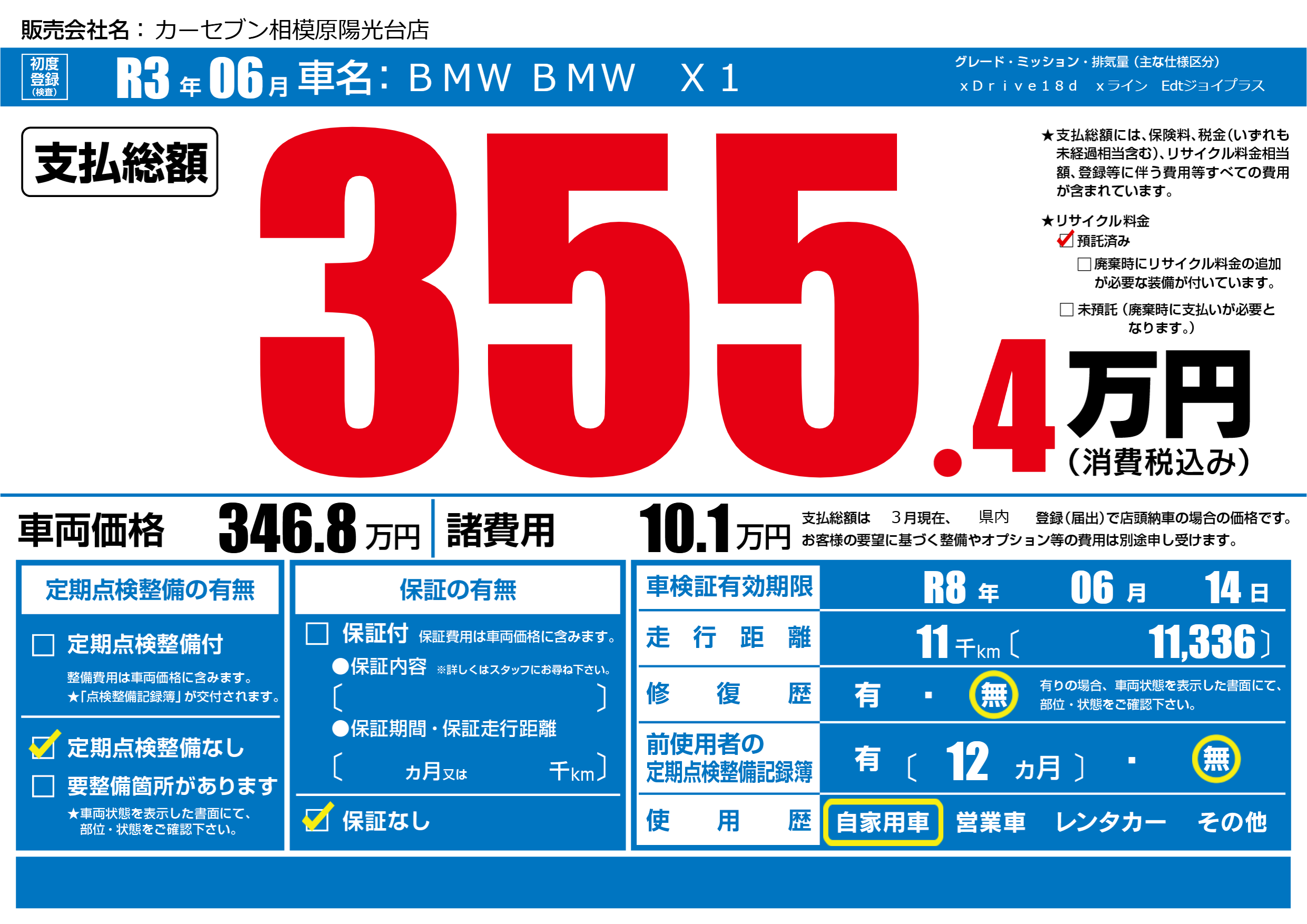| 車名 | BMW BMW X1 | グレード ミッション 排気量 |