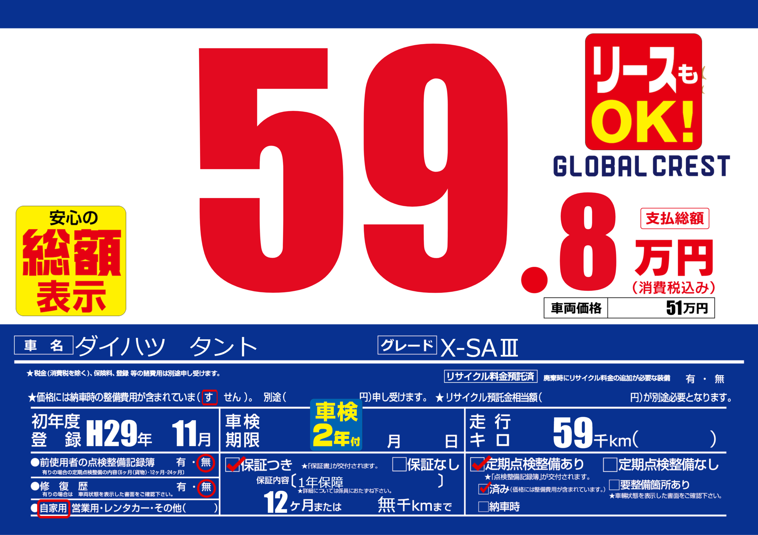 | 定期点検整備 | 定期点検整備あり 定期点検整備済み | ||