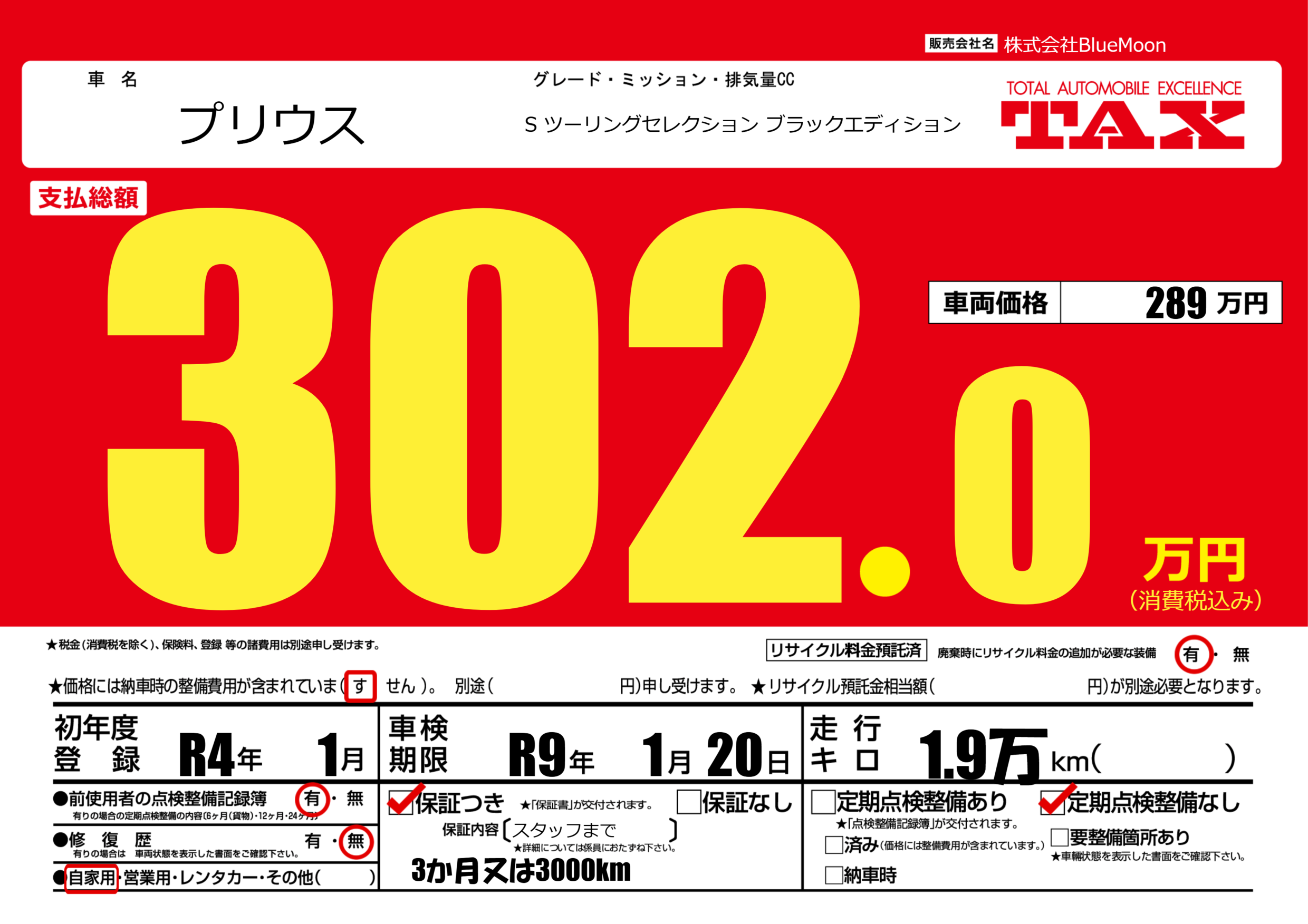 | 車名 | プリウス | グレード ミッション 排気量 |