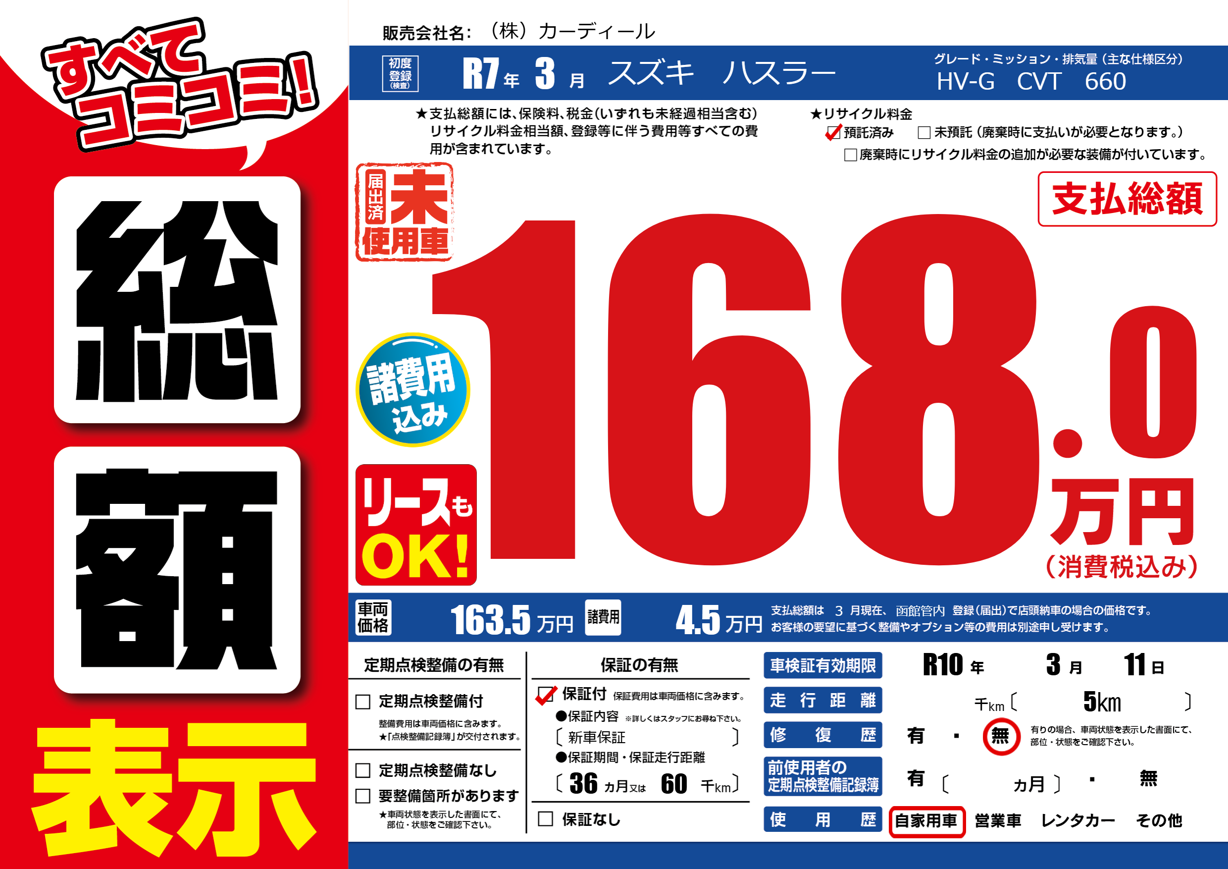 | 走行キロ | - | 初年度登録 | R7年3月 |