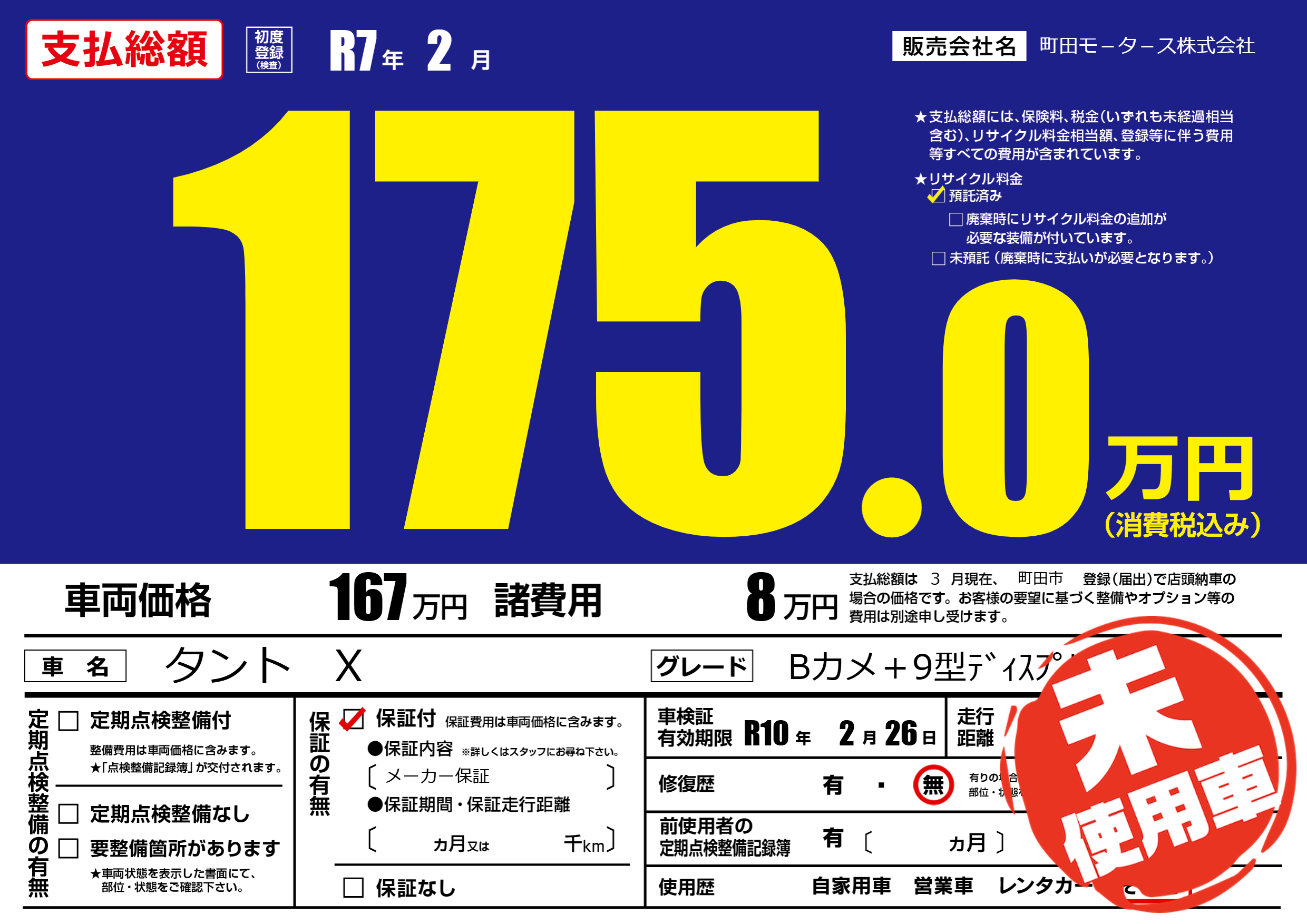 | 走行キロ | - | 初年度登録 | R7年2月 |