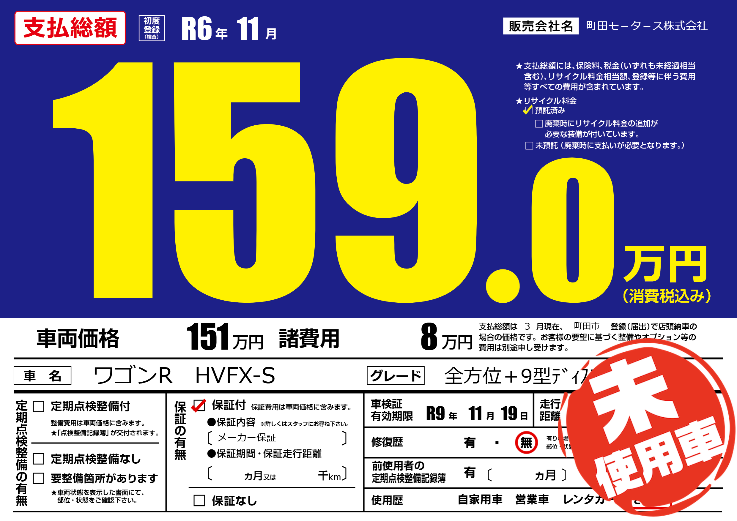 | 車名 | ワゴンR HVFX-S | グレード ミッション 排気量 |