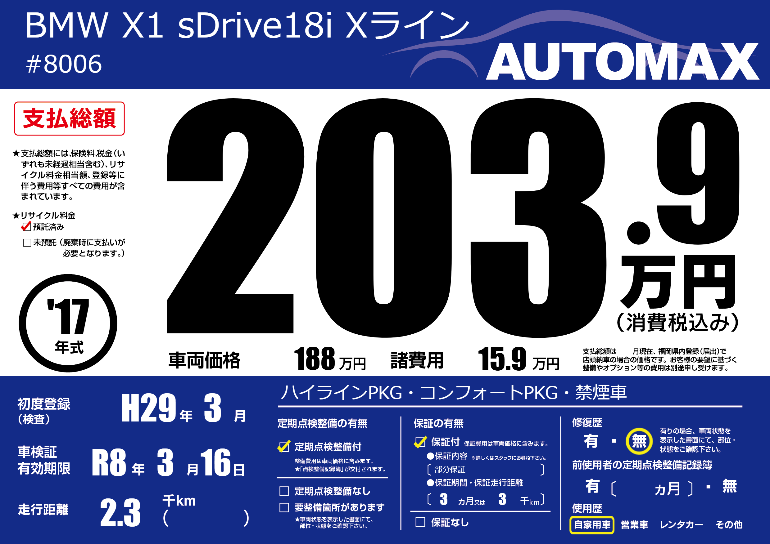 | 車検制限 | R8年 3月 16日 | ||