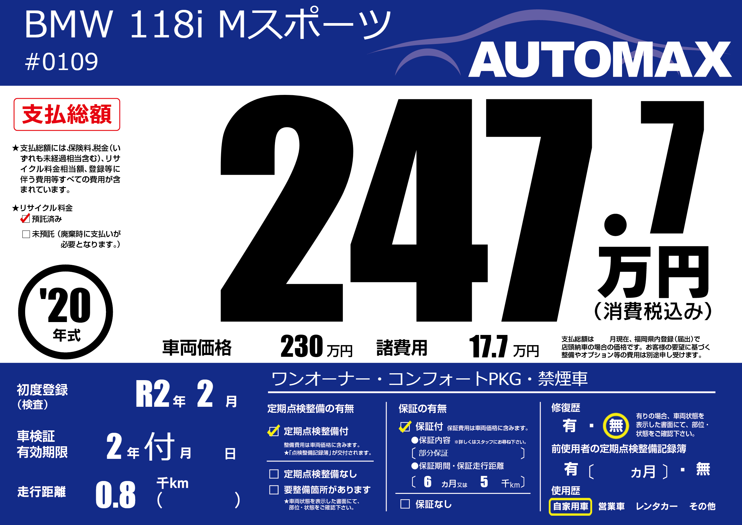 | 車検制限 | 2年 付月 - 日 | ||
