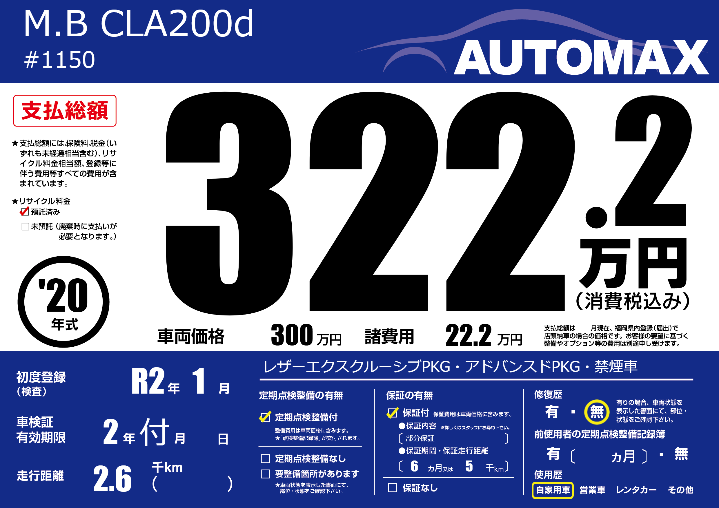 なし | 車検制限 | 2年付月---月 |