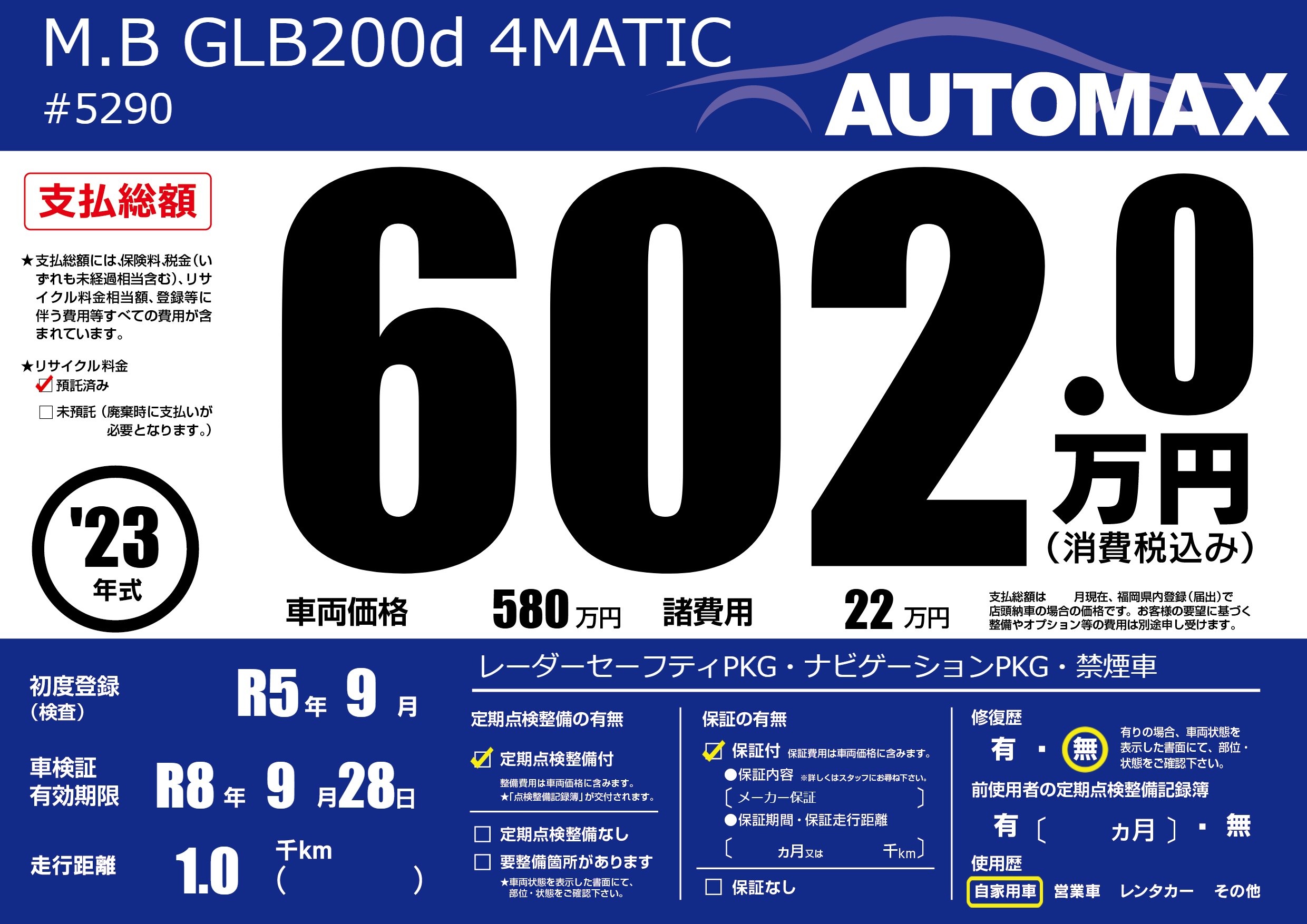 | 初年度登録 | R5年9月 | ||